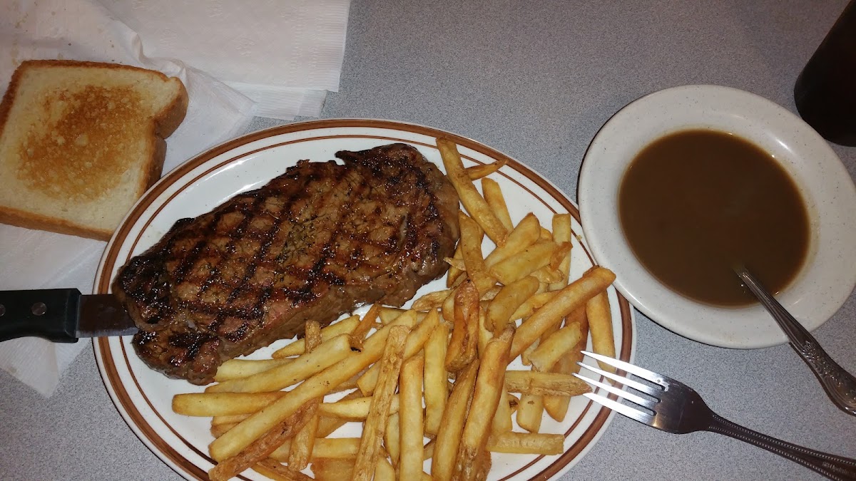 Good place to get a fine steak. Sides are good but the broccoli is the best. If you get a salad make sure they don’t put the bacon bits on, they will break your teeth! Staff has always been friendly and know how to serve. We live across the road and in ten years have never been disappointed. By the way the roundup pizza is better than any other place. For real!