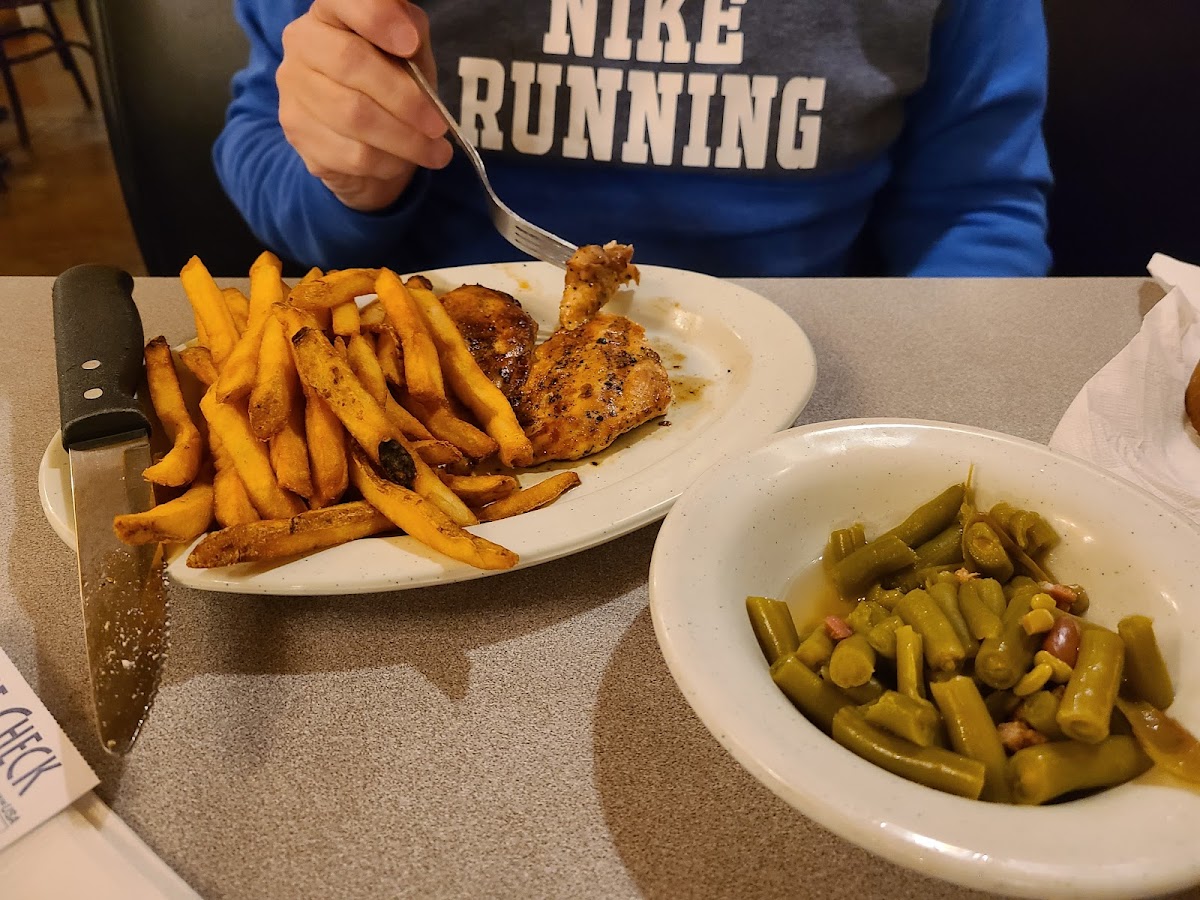 4.5 rating really only due to bland green beans and instant mashed potatoes. The meat was great. As good as my husband's. The desserts are great as well. Drive thru easy.