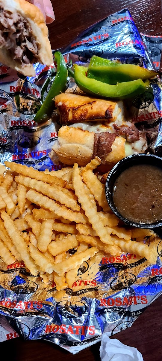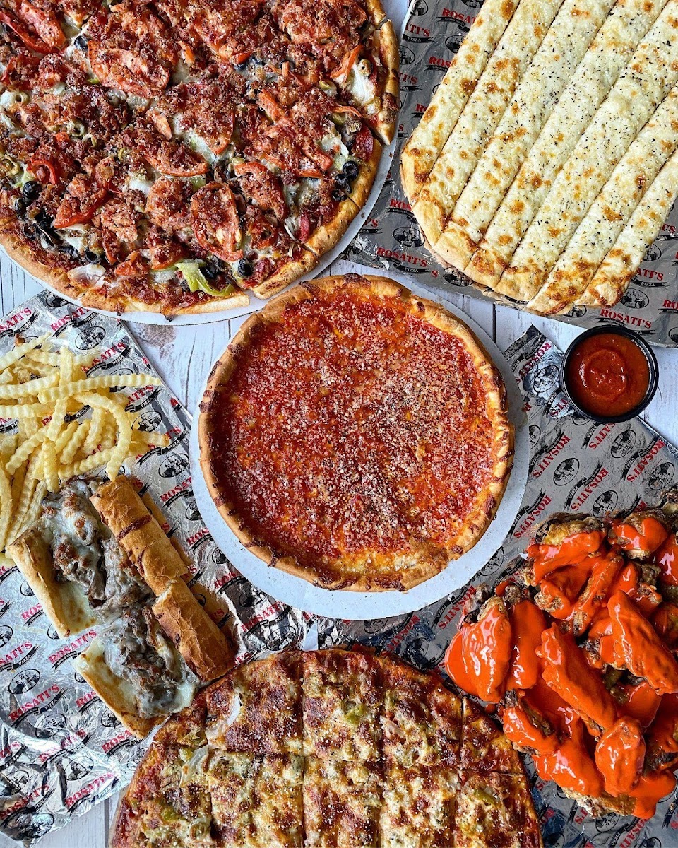 Came here for my birthday. I'm from Chicago & am always looking for a good Chicago pizza. I haven't found anything in the Evansville area that really comes close. Until now! Rosati's Chicago pizza is not deep dish, but the crust is just right. The sauce is chunky, not mush, & the spices are spot on! We had Italian sausage on the pizza. It is the first sausage that did not give me a hint of heartburn in decades! And it's nitrate-free. We got a order of their dough nuggets as an appetizer. Perfectly soft & seasoned! Took most of home for a meal for our adult daughter. She had a calzone. And again, it was great To top it off, I got a free dessert for my birthday. I got the cannolis... OMG! Can't forget to mention the staff! Very kind, attentive & informative. Atmosphere, very laid back. Big booths & tables. TVs everywhere to watch sports & a couple with cartoons. All of the tvs were muted with closed captioning on. Music playing overhead, but not too loud. This may have been our first visit, but I guarantee it won't be our last!
