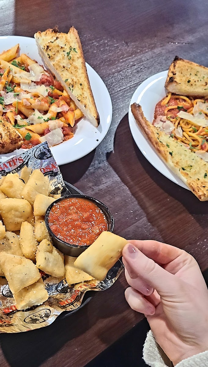 Invited yesterday to lunch at Rosati’s with my husband’s family. Being diagnosed with celiac disease years ago has made eating out difficult for me. Especially when I love pasta and pizza so much. Most places that serve gluten free pizza tastes like cardboard smells and I’ve been disappointed in my fair share of pizzas over the years. It’s always terribly bland. But…Rosati’s gluten free pizza was phenomenal. Great flavor. Robust flavors in each bite. Crust was NOT like cardboard. Plenty of toppings to choose from and just a really good meal all around. The service was great. Refills kept coming and the young waitresses were really kind. We will be back. It’s over an hour trip, but it’s worth that and more for good food…especially good pizza. :) Husband’s deep dish and my gluten free pizza shown. He loved his too and ate it for left over dinner!! He said it tasted just as good hours later heated up!