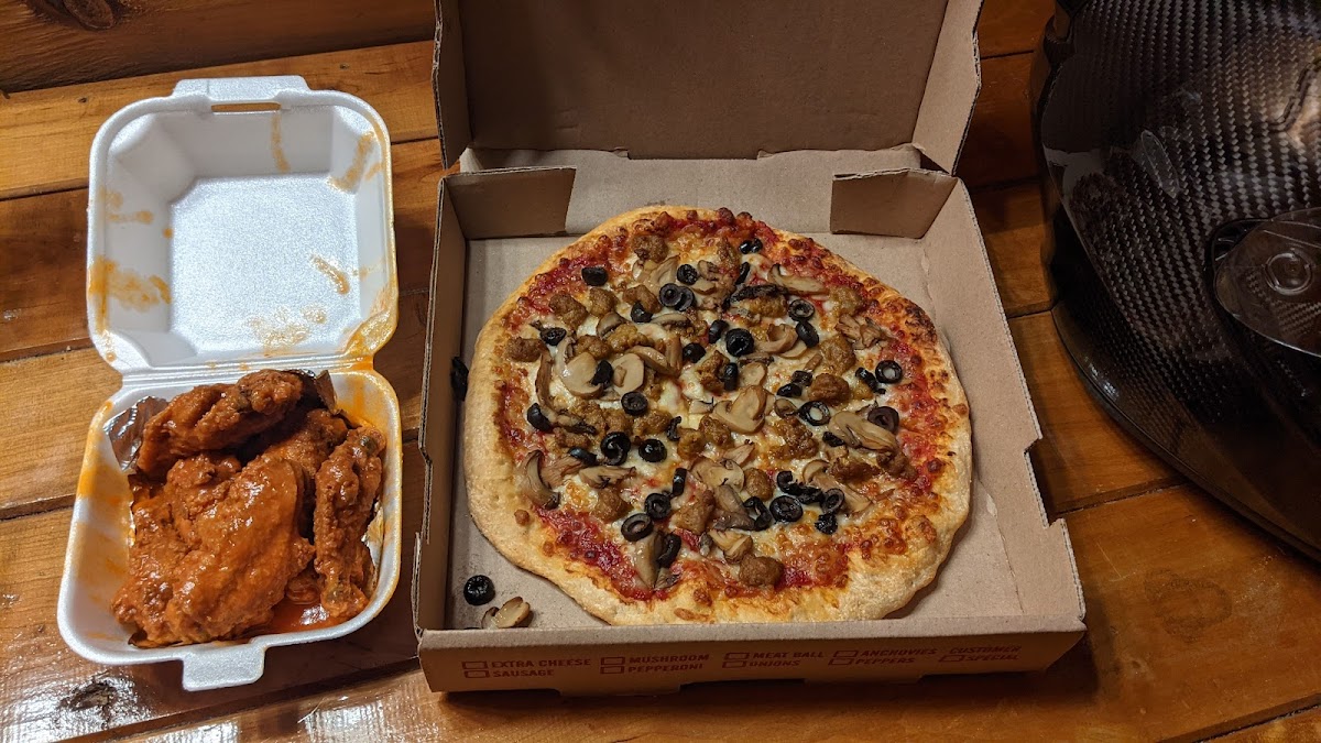 Camping in the area for the weekend. Our neighbors ordered pizza from them and they were suggested by others. Got a supreme and chicken strip meal. Food was good. Super pleasant over the phone and in person. Wasn't the best pizza we've ever had but we weren't expecting that. It was good for the price and quantity. Service was great and when we come back to the area we'll order again for the service alone.