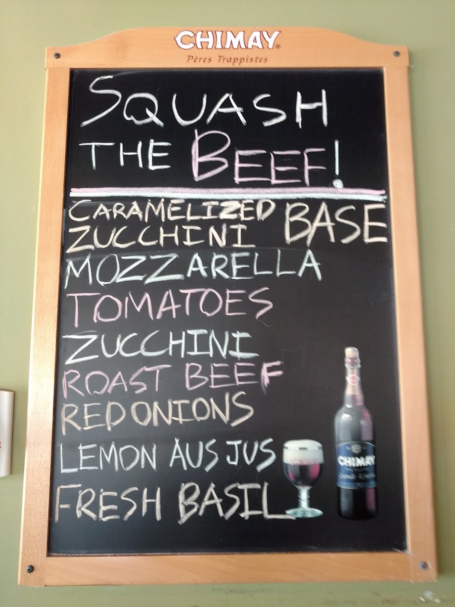 Tomato sauce, mozzarella, pepperoni, Italian sausage, green peppers, red onions, and smoked gouda.