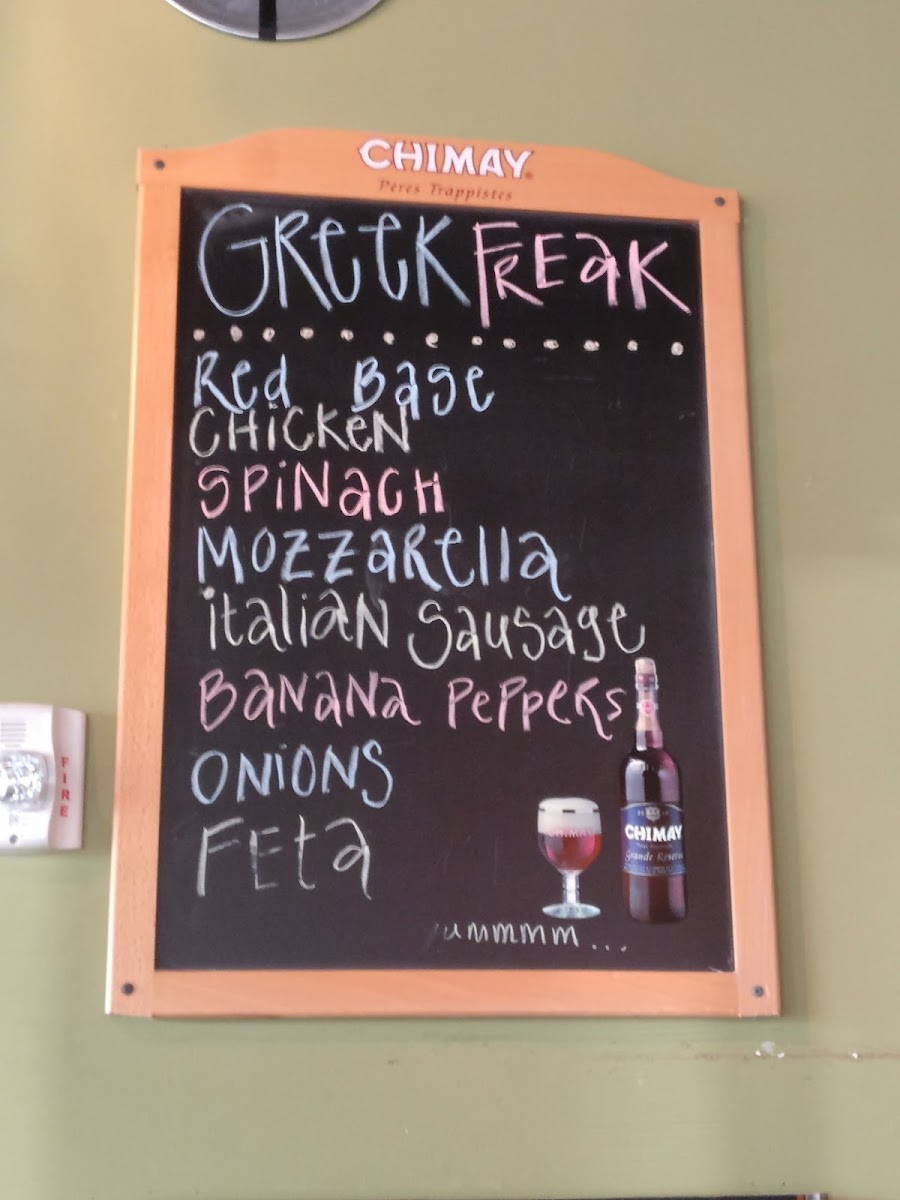 Tomato sauce, mozzarella, kalamata olives, feta and topped with fresh baby spinach.