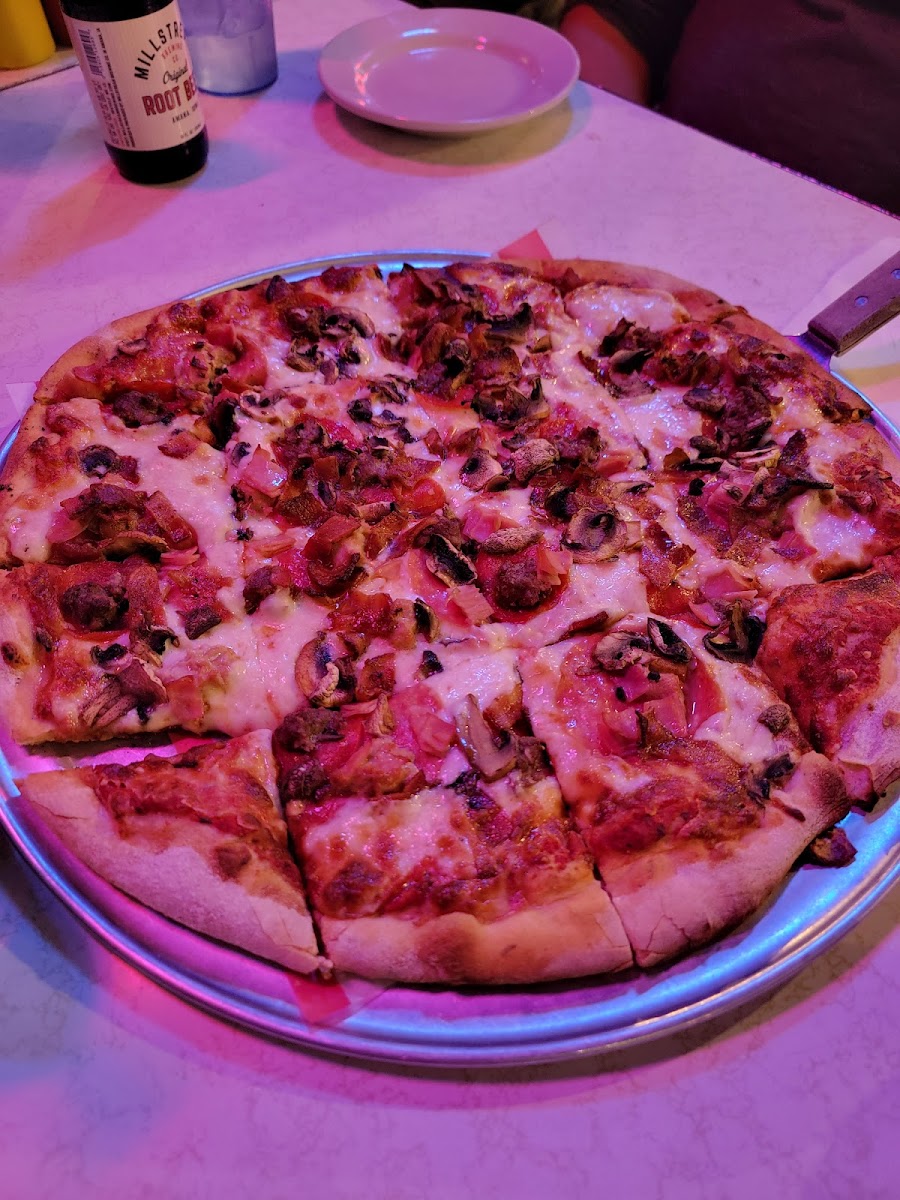 Very good pizza! There probably could've been a better quantity of meat on the pizza itself but it was still very good