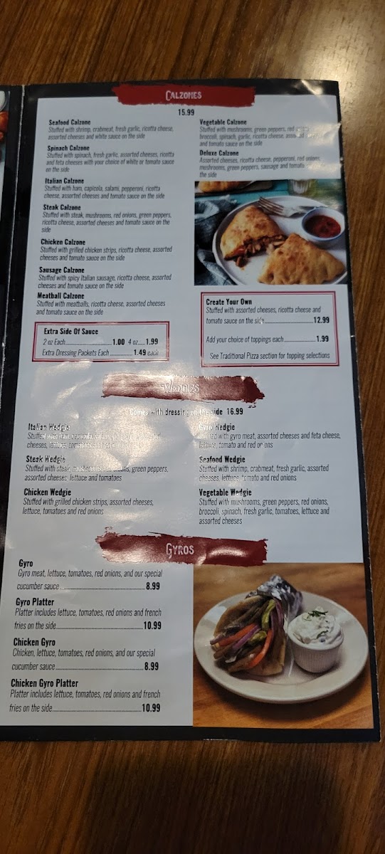 Stuffed with steak, mushrooms, red onions, green peppers, ricotta cheese, assorted cheeses and tomato sauce on the side