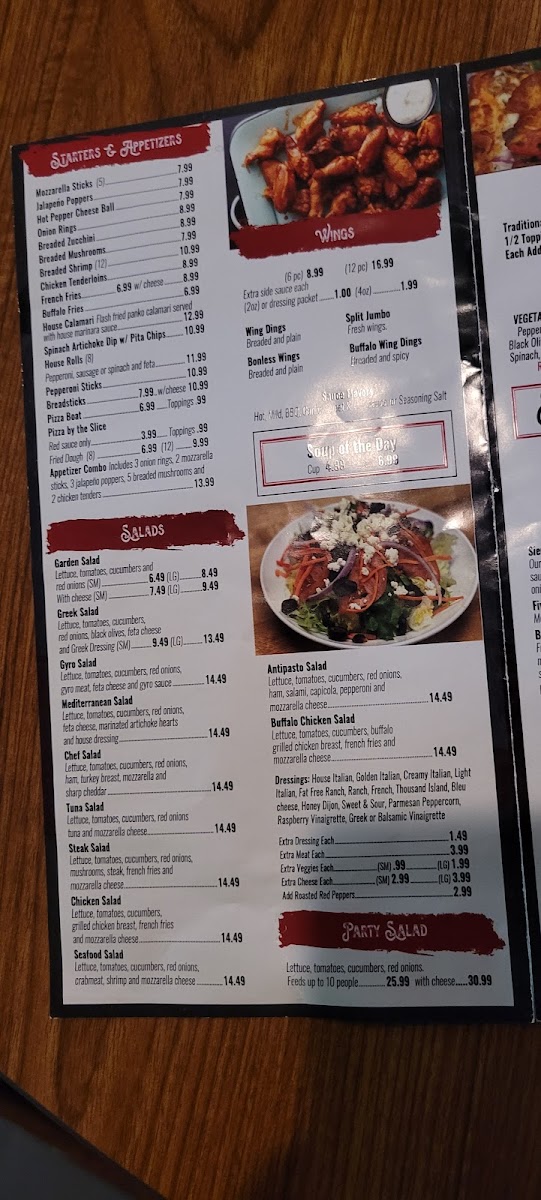Stuffed with mushrooms, green peppers, red onions, broccoli, spinach, fresh garlic, tomatoes, lettuce and assorted cheeses. Comes with dressing on the side