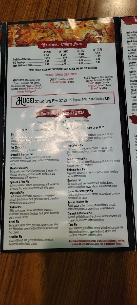 Ham, salami, capicola, pepperoni, sausage, hot peppers, extra cheese, lettuce, tomatoes, red onions and Italian dressing
