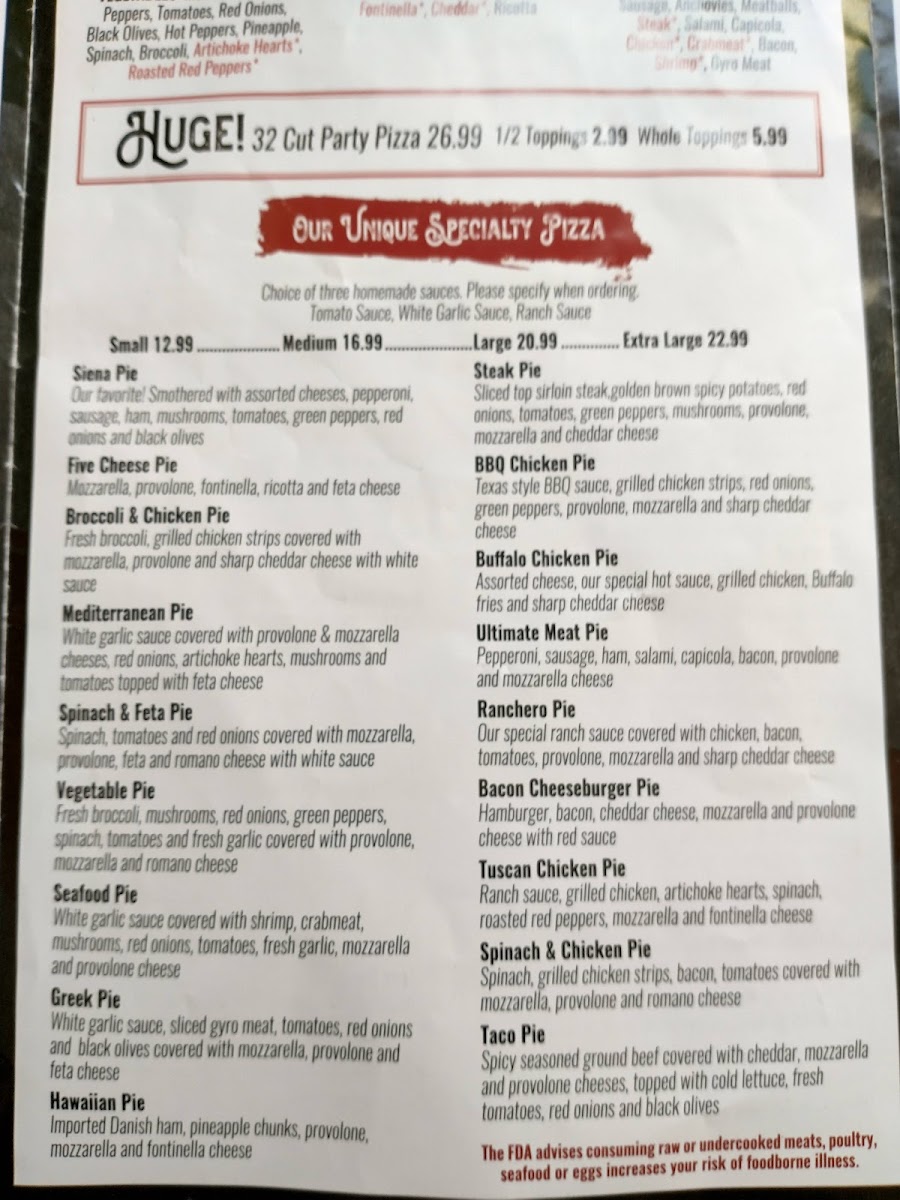 Red sauce, imported ham, pineapple chunks, provolone, mozzarella and fontinella cheese