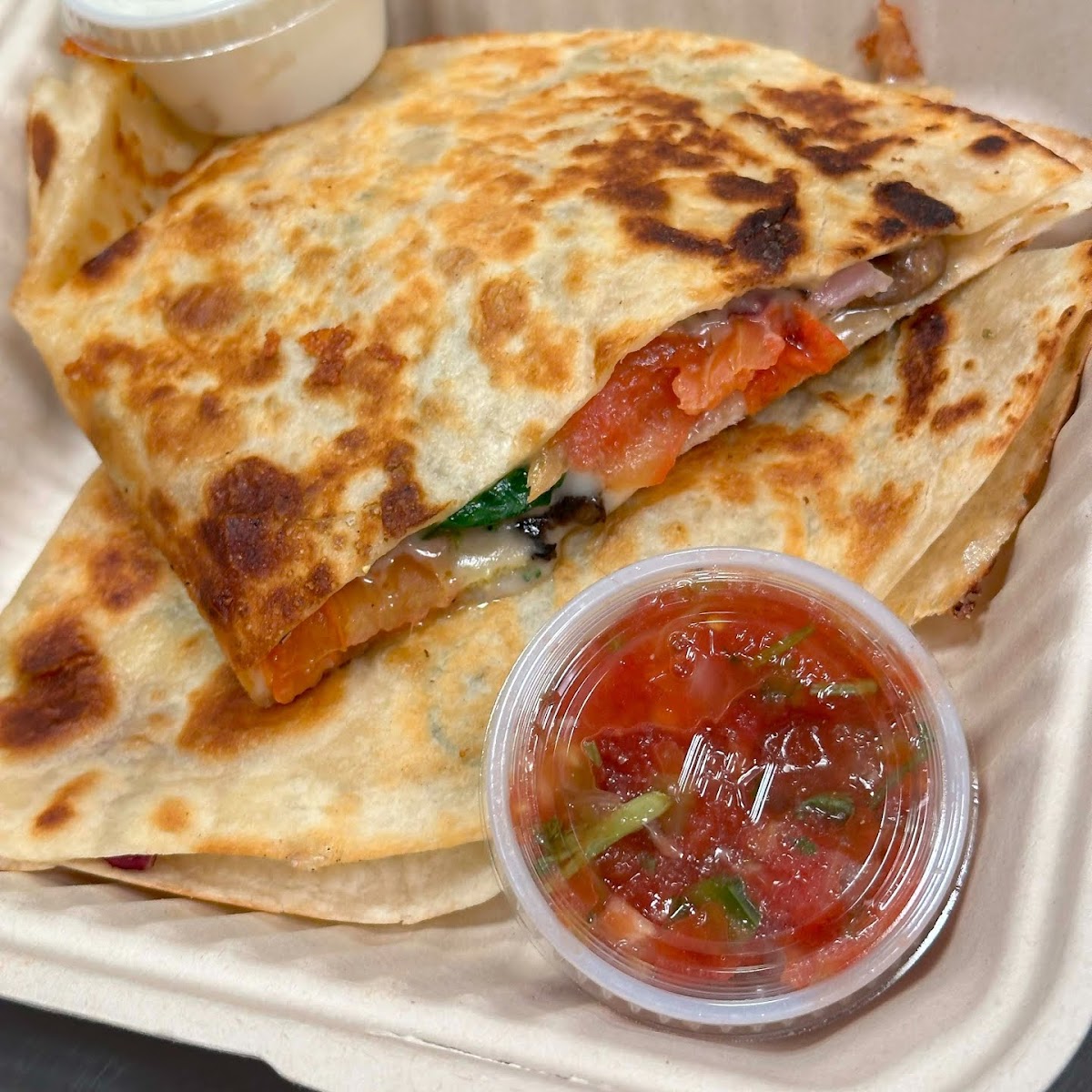 Pizza and quesidillas were delicious! Everyone was very friendly and the large order we placed was done in less than half an hour. A couple of issues...we never got a small order of Mexican rice but we were never charged for it. Also, the prices are higher than on the site.