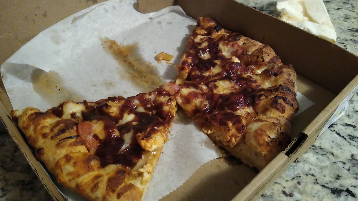 I've ordered the barbecue chicken pizza from here a few times and I can't bring myself to try anything else because it's the best pizza I've had in as long as I can remember! Generous toppings and the crust is amazing. And I often eat don't eat pizza crust unless I have marinara to dip it in.