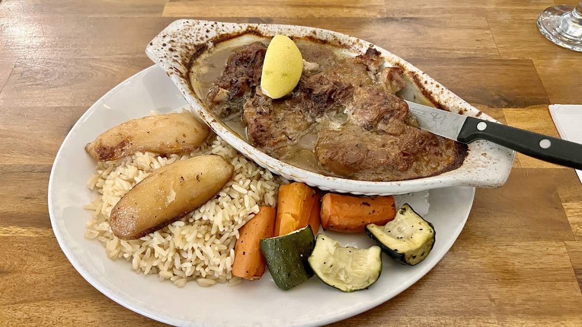 It wasn't overly busy when we arrived and the waitress wasn't overly pleasant. We got some decent food. I got the famous lamb meal at 40$ you get a lot.of lamb but it seemed a little pricey. Tasty, full flavored food but nothing amazing