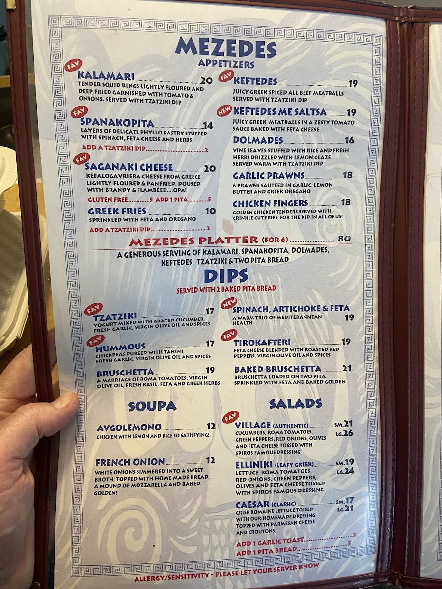Favorite. Layers of delicate phyllo pastry stuffed with spinach, feta cheese and herbs. Add a tzatziki dip for extra charge.