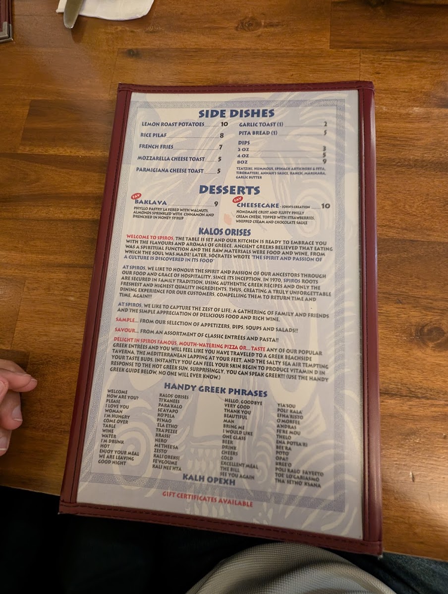 Favorite. Breast of chicken marinated with Greek oregano and lemon then charbroiled, topped with spinach and feta cheese, then baked to perfection.