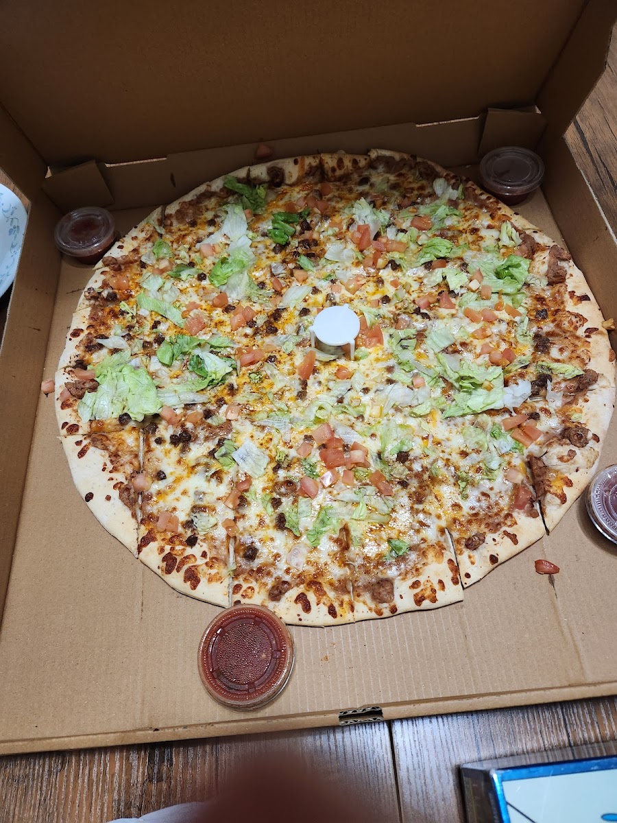 This is a cute local pizza place! We eat in, carry out & deliver. Usually get the HUGE king pizza! I love the cheeseburger & CBR the best.