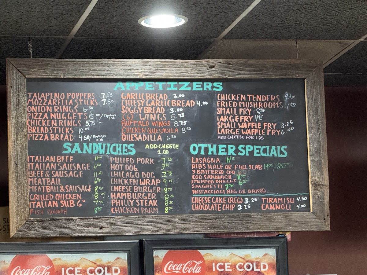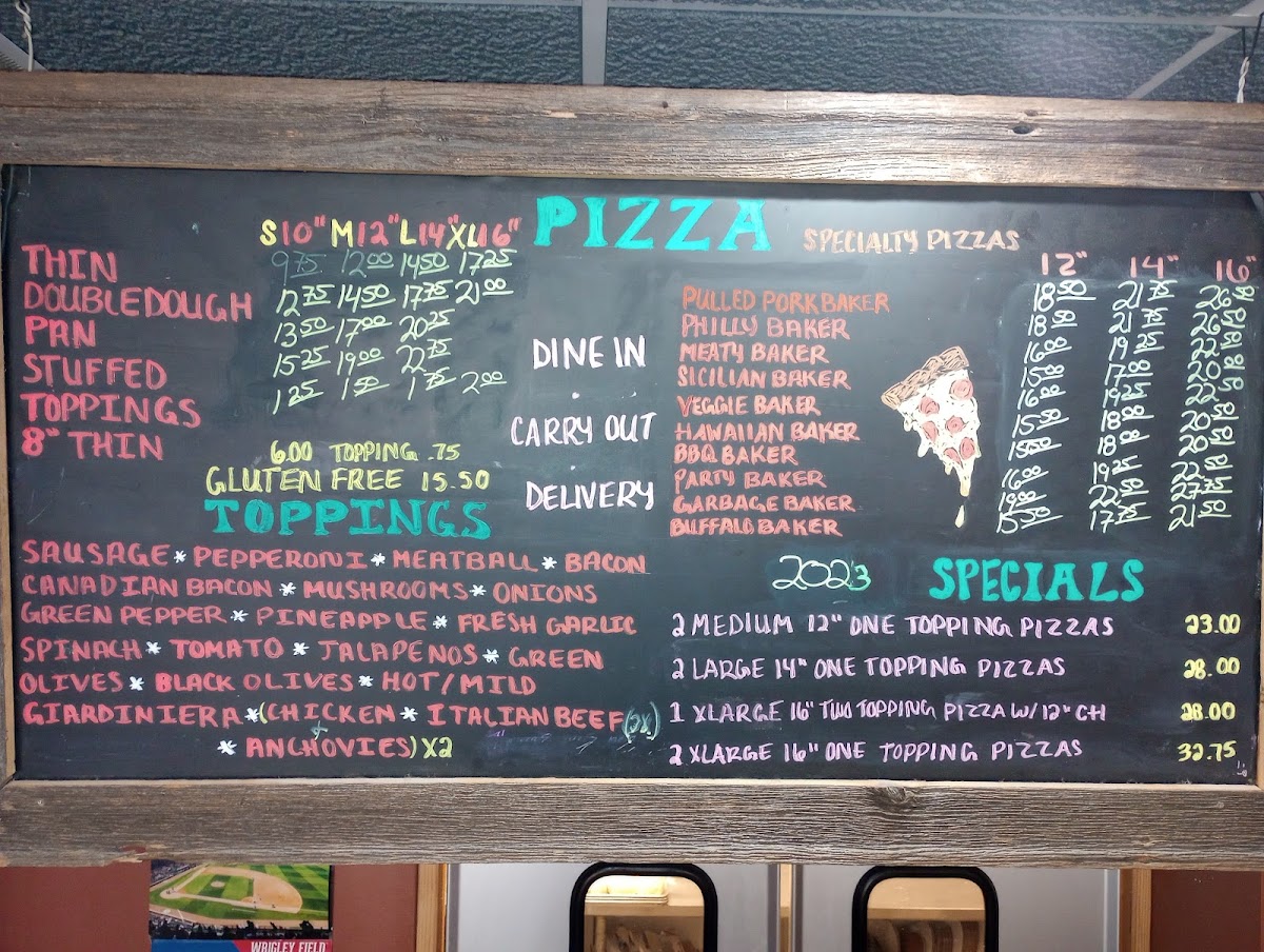 Sausage, Pepperoni, Meatball, Bacon, Canadian Bacon, Mushroom, Onion, Greenpepper, Pineapple, Fresh Garlic, Spinach, Tomato, Jalapenos, Green & Black Olives, Hot Or Mild Giardiniera