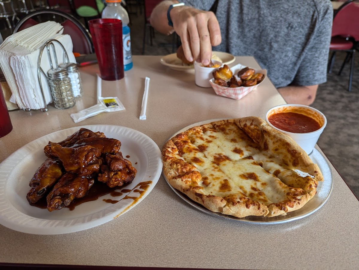 Good homestyle cooking in a true family spot! Walked over from Maple Fest Campground for a late dinner after biking six hours — I was hungry! By the name, I thought I’d be ordering pizza, but they’ve got a surprisingly diverse menu. I went with the blue plate special — meatloaf and mashed potatoes — mmm gravy... WOW. Absolutely amazing comfort food. The staff couldn’t have been nicer, and the whole place just felt welcoming. I downed a cold chocolate Yoo-hoo as soon as I got there (perfect choice), while my friends enjoyed a few bottled beers — great selection and service. If you’re anywhere near the trail, this place is a must-stop!