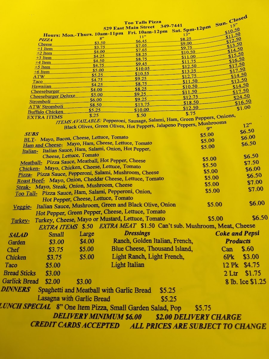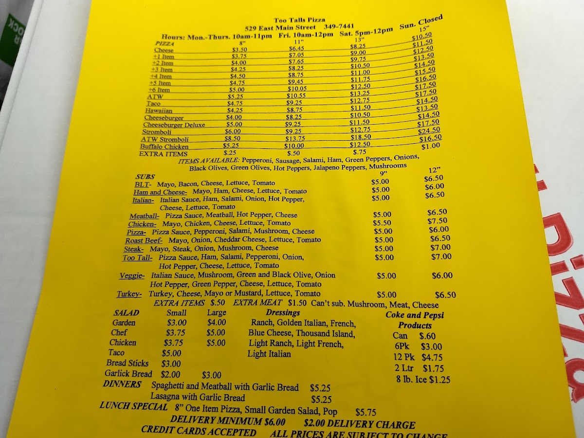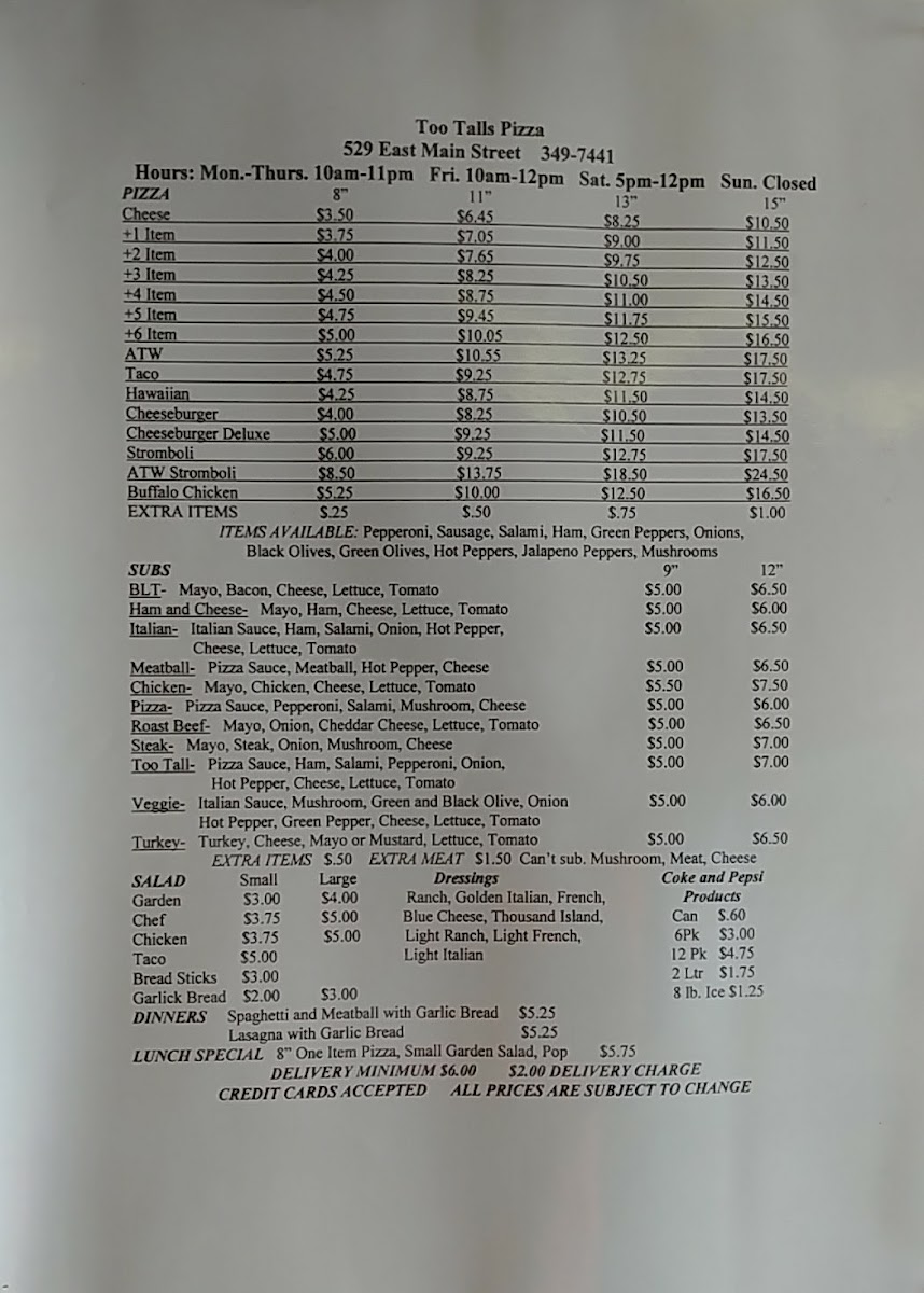 Choose a soda: 7 Up, Coca-Cola, Diet Coke, Diet Pepsi, Pepsi.