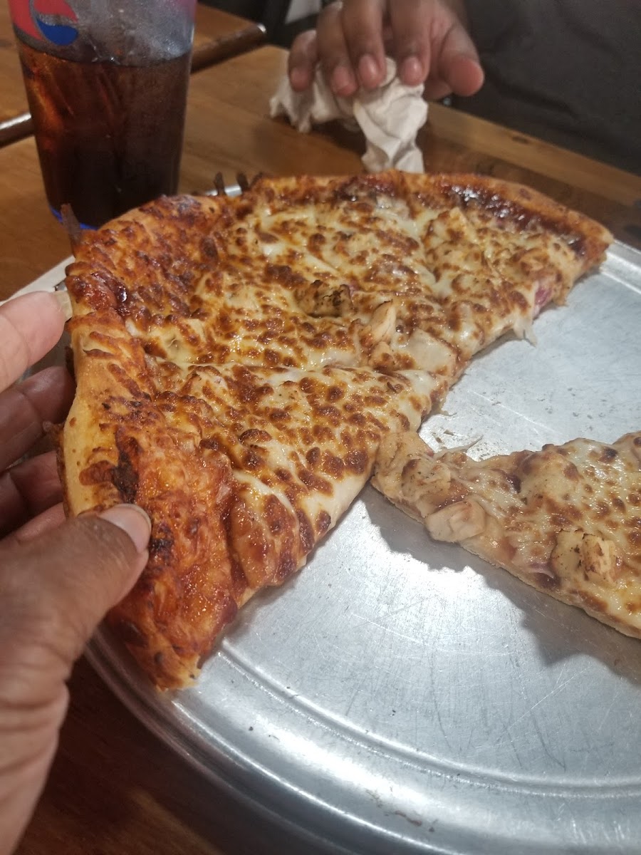 We stopped at this place on our travels. The wait staff was very nice and conversational. We ordered cheese sticks and three personal pizzas all in the party and thought it was good stuff. We would go there again. They have a variety of meals besides pizza and beer and wine. There is also a salad bar. You can also have dessert. Overall really good