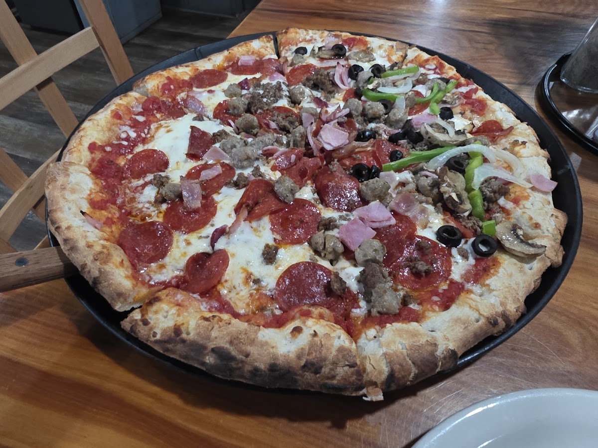 One of the best pizzas around! It’s a very nice atmosphere. The service was okay but they were very busy.
