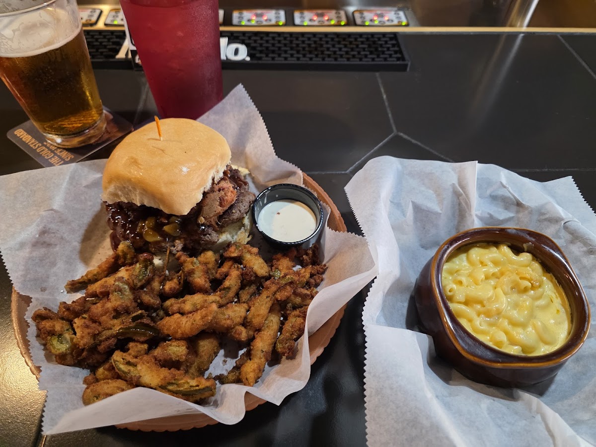 Stopped here for dinner while in town for the weekend. I really loved the atmosphere. The decor was subtle and the renovations to an old building were tastefully done. Food was pretty good. We had chicken fried steak bites for an appetizer and the bacon jam burger with fries, and bacon Mac and cheeseburger with mashed potatoes for entrees, both were fabulous. The fries could've been cooked more but they were fresh cut which was a plus.