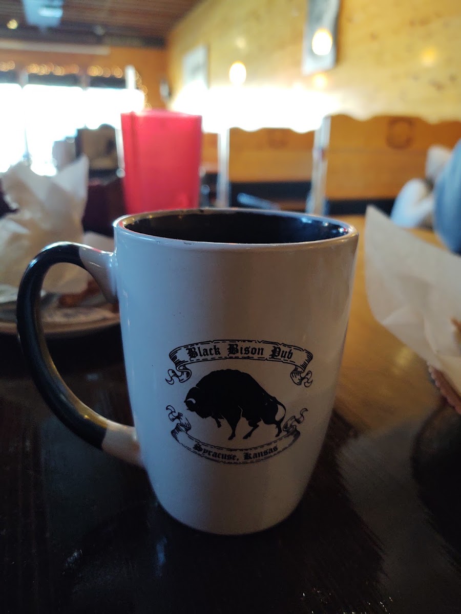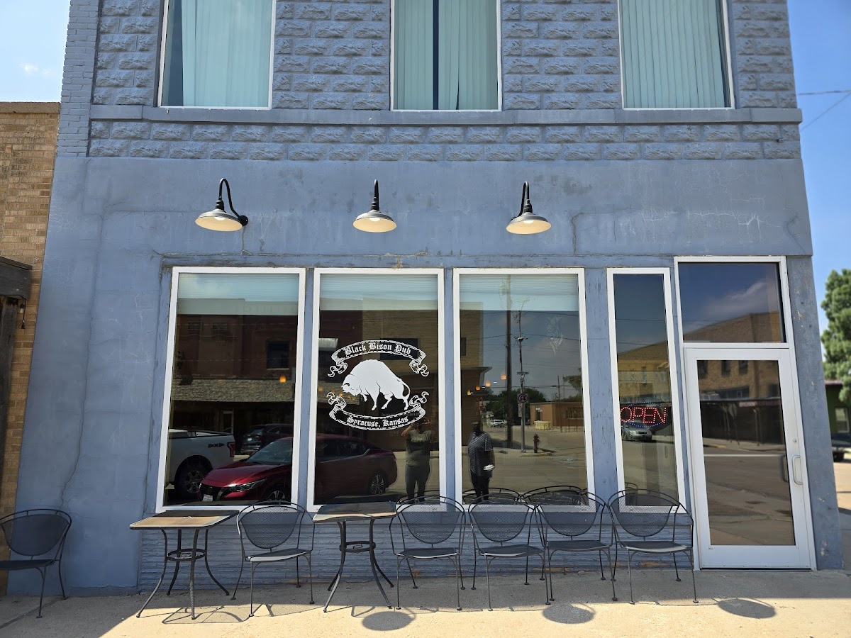 Black Bison Pub at 122 Main St, Syracuse, KS 67878, United States is known as a pub with 464 user reviews. The menu features diverse choices such as the Hangover Burger, Nachos, Coffee, Lemon Pepper, and a Chicken Fried Chicken Sandwich served with a side of Steamed Vegetables, providing a relaxed atmosphere for patrons looking for casual and flavorful pub food.