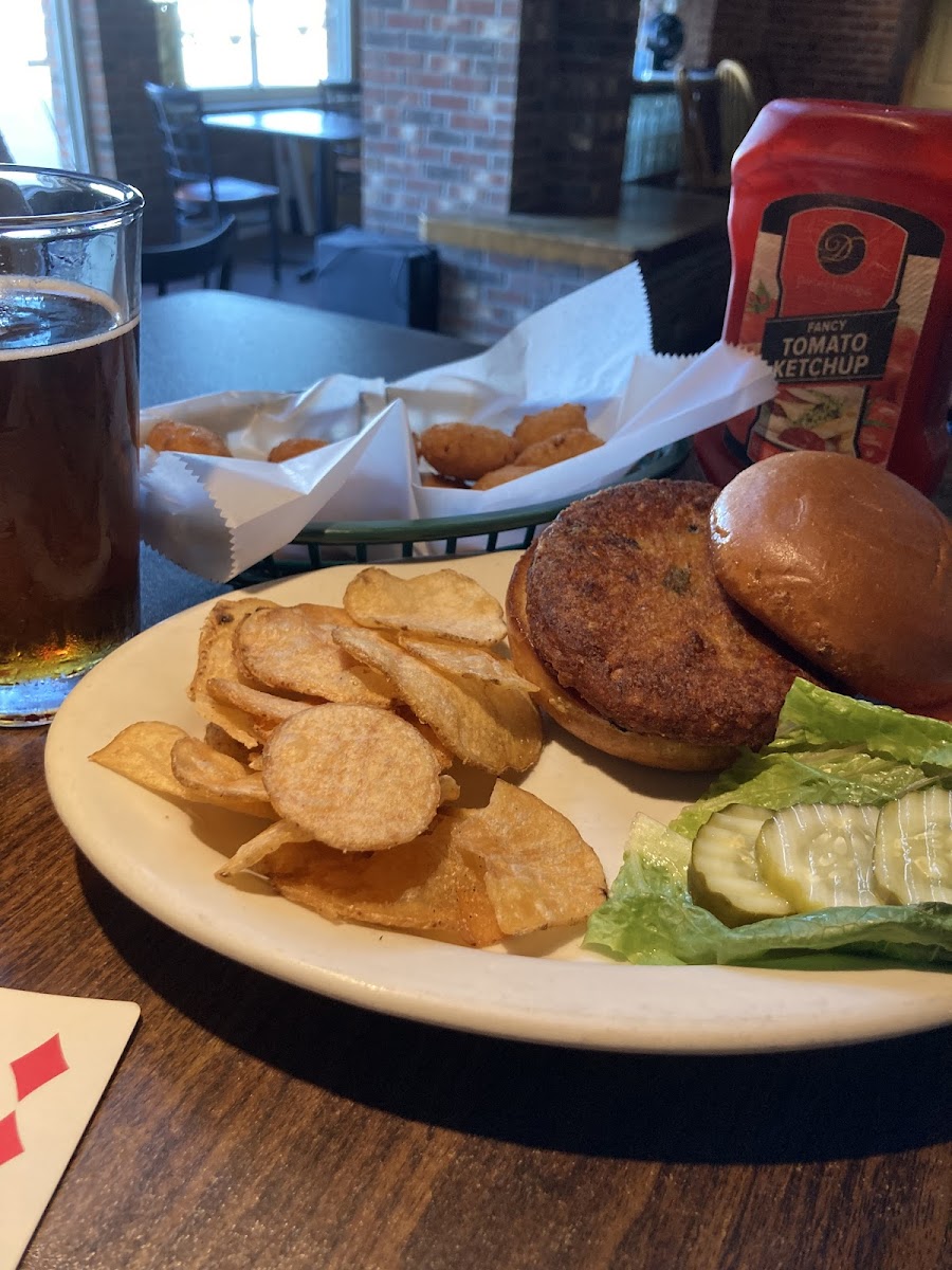 Our dinner stop for our first first night in Castine. We were surprised not to see fish and chips at on Irish pub on the water but hey they had a veggie burger. Which was fine and the Mac and cheese bites were a hit. A mixed selection of beer and some wine. We were in early but I’m sure it gets hopping later at night.