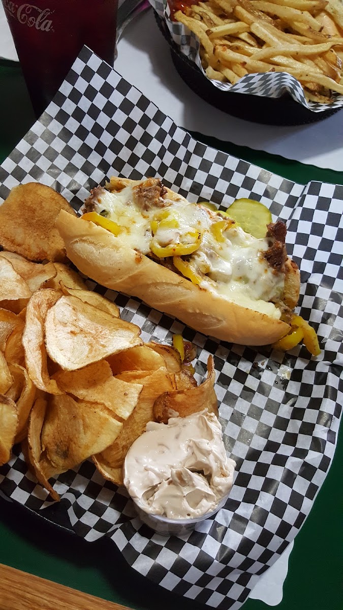 First time here. I thought everything was quite good here. The servers and host were very nice. They were both polite. My wife ordered the Philly cheese steak. I ordered a 1/4 pound hamburger loaded with cheddar cheese and deep fried shrooms. The food was very good. The garnishment was fresh and delicious. The batter on the mushrooms is probably a secret because it's the best I've ever tasted. I will be back without hesitation.