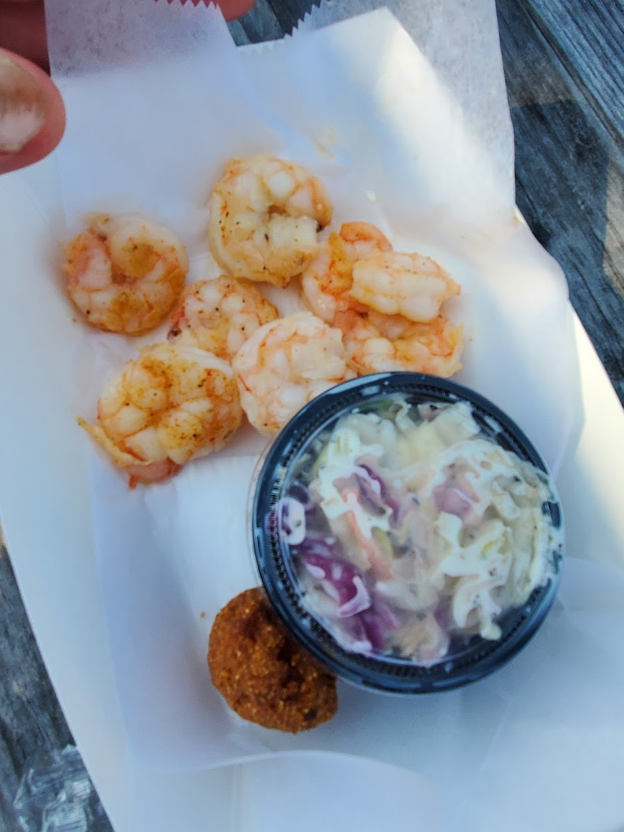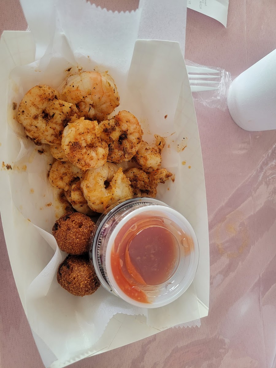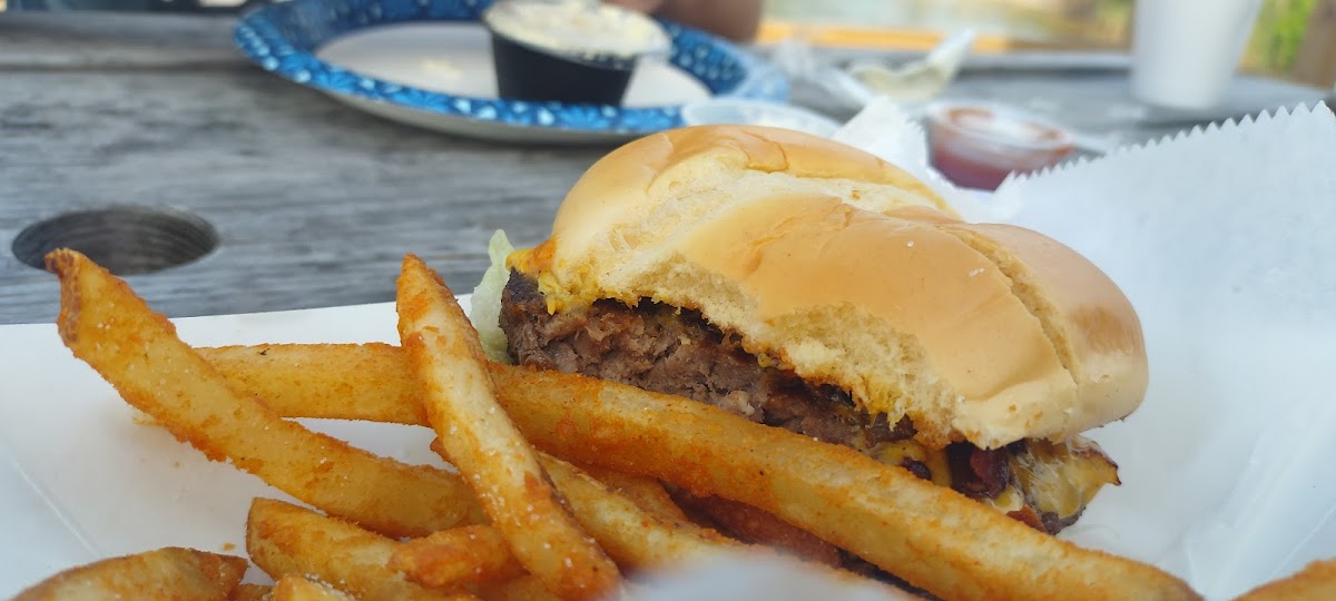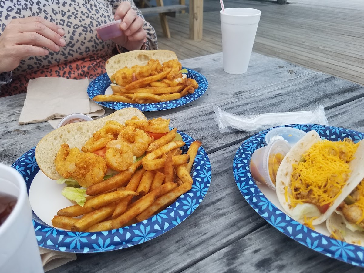 This is a great little place to stop by. The staff is very friendly and helpful. They have a wall dedicated to showcase local artists which was fun to look at. The view is nice. The food definitely hit the spot, especially the sweet tea. It is neat that you can go up to the pub, order a drink, and bring it down to have with your food. I had the burger with fries. My daughter had the chicken tender basket, and husband had the fish tacos. Everyone enjoyed the food. No complaints. We will definitely come back when we go to Dauphin Island.