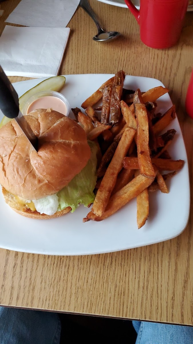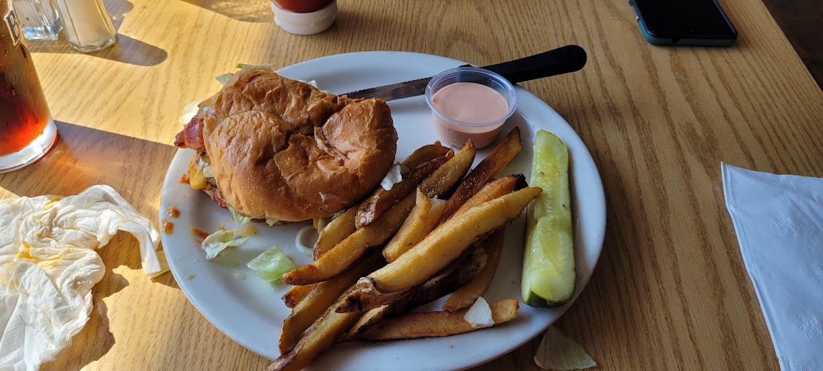 I loved this place! It was full of locals, travelers, everyone seemed welcome. The women running the show were friendly and efficient and the burger was one of the best I've had. Big, beefy, juicy and messy! Delicious! All for a reasonable price. RV Parking too! What a find!