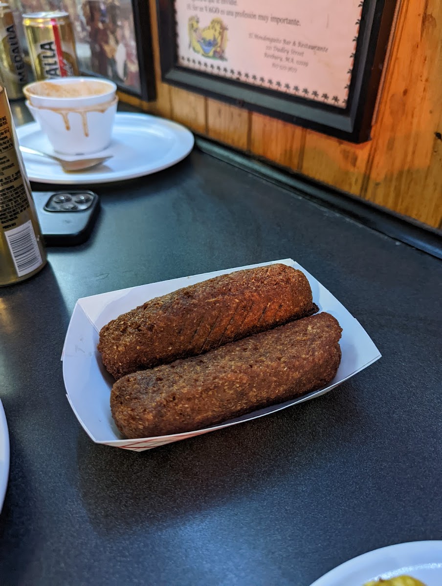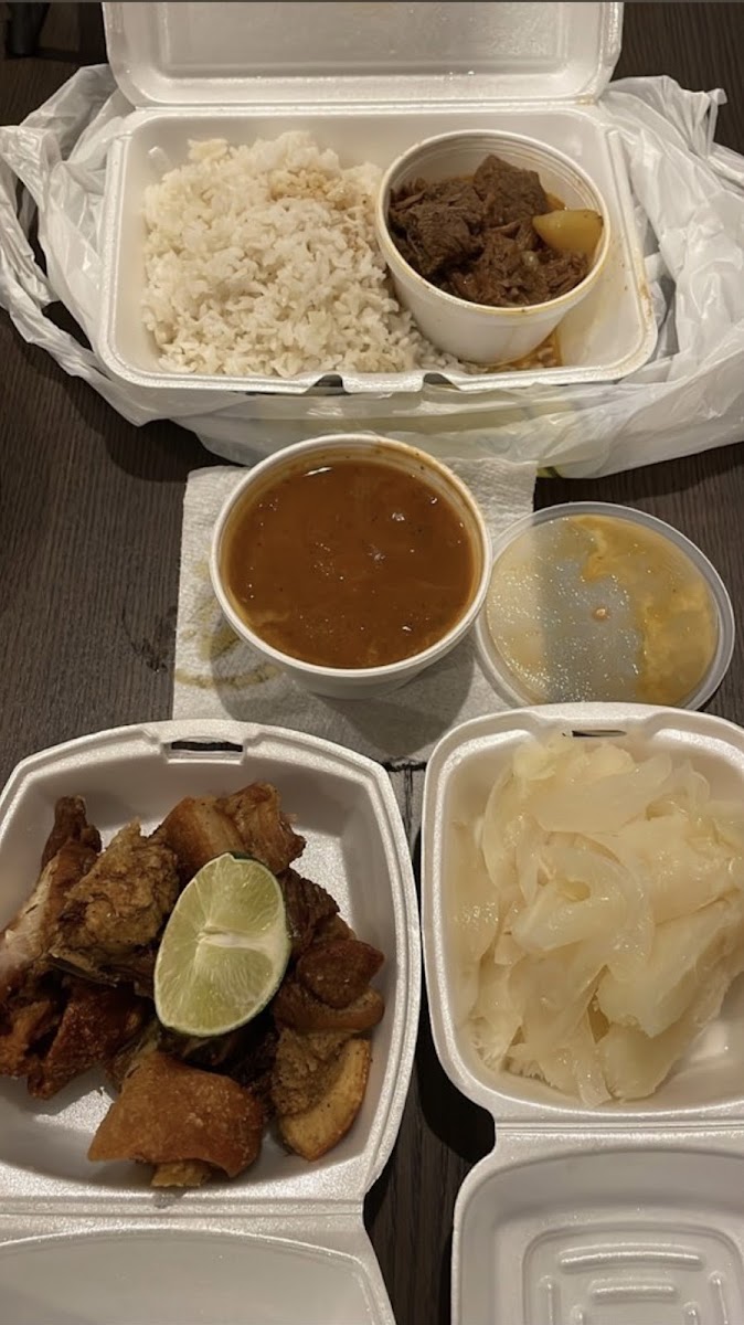 I've come here plenty times and love it. The food is authentic & delicious. The atmosphere is very nice. You can either sit, drink a beer & relax or listen to music & dance. The place is a bit small but it doesn't bother me. The only downside is sometimes certain foods weren't available. There was one time, I wanted morcilla. There was none available. I had drove from Roxbury to Boston just for it. The guy felt bad & didn't want to disappoint so he quickly made us some. Either way, there's moriclla (as I've previously mentioned) chicharrones, platanos fritos, arroz con gandules, yucca, pernil, etc. It's a lovely place & the decorations are nice as well.