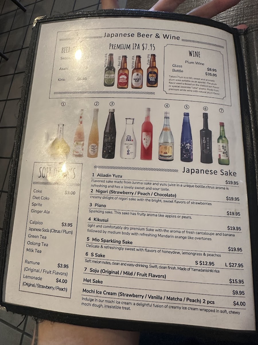 In: jalapeno, cream cheese, spicy tuna Out: avocado sauce – eel, spicy mayo