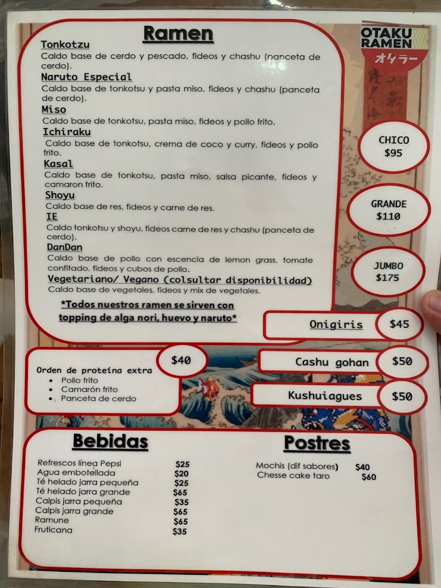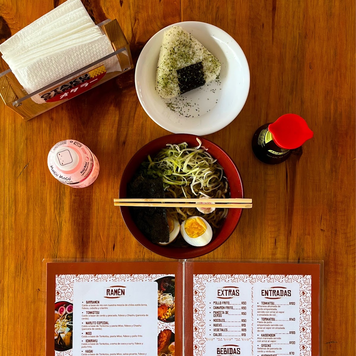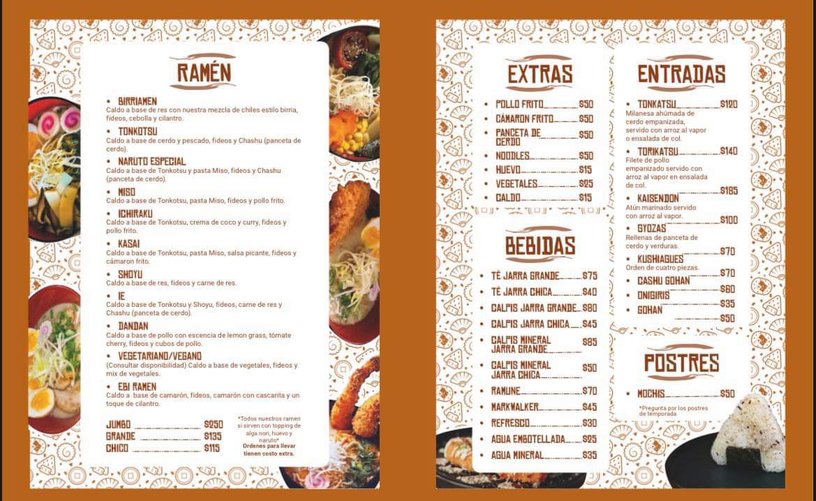 Caldo de res con fideos, carne de res, alga nori, huevo, naruto, salsa y tamaño a elegir.