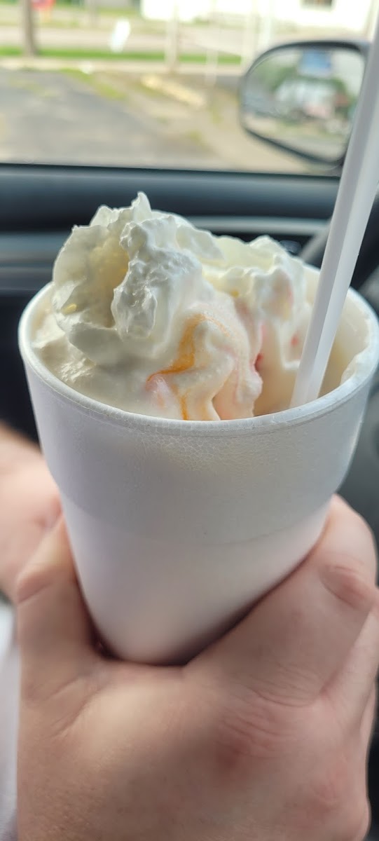 First ime being here and im impressed i got a banana shake and then my fiance got a chocolate peanut butter shake and they were so good. The guy was very polite he brought us a menu while we were sitting in our truck. (Most people wouldnt do that) the shakes had real friute in them vs. Syrup and these bad boys were thick. The way these shakes were made is like you whipped em up at home very comforting. The price for 2 large shake wasnt that bad either over all very satisfied
