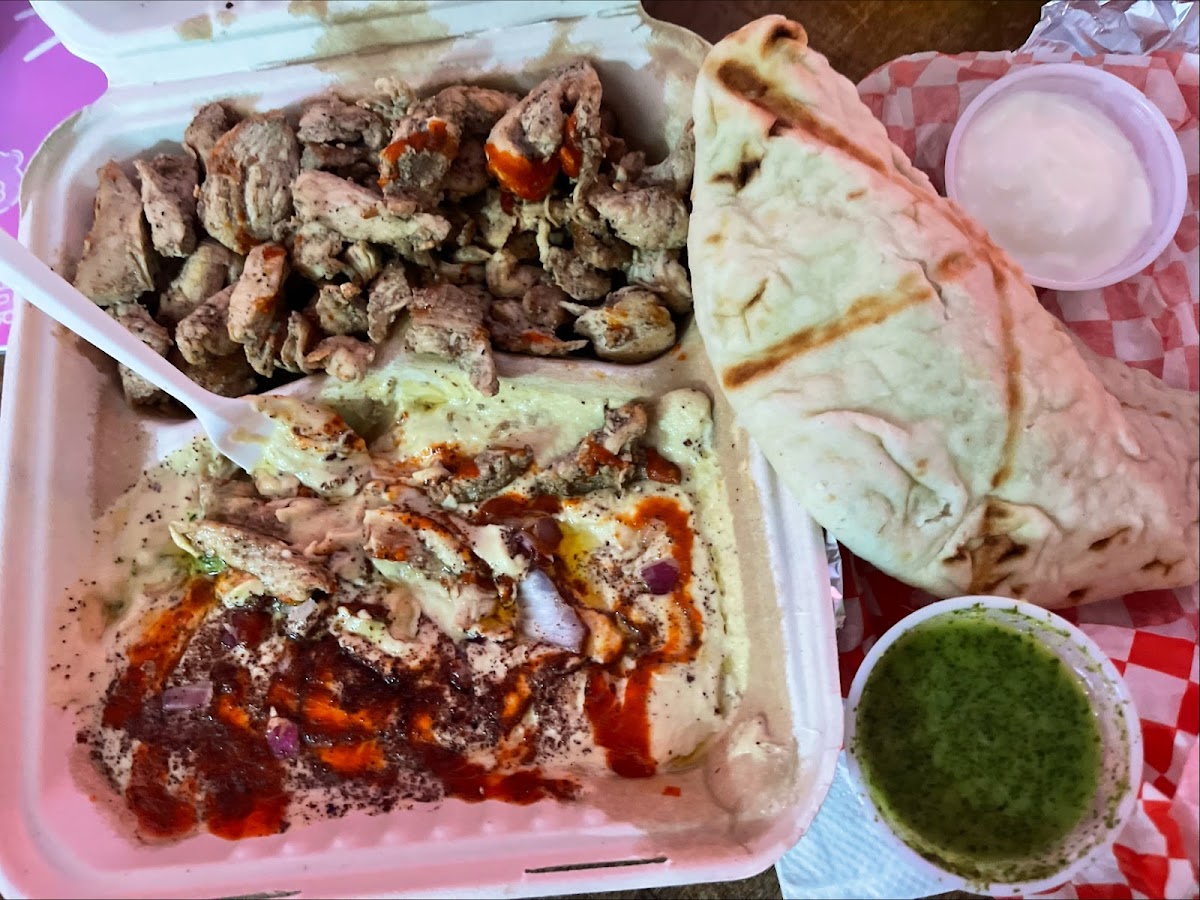 This is the best Mediterranean food I’ve ever tasted. I ordered their creamy hummus with a side of chicken and was tantalized by the flavorsomeness (Gordon Ramsey joke inserted here) of the chicken breast and sauce bedazzled hummus (plus my special request for raw onions); it was a symphony of bliss as each bite of warm, juicy, flavor bombs ensued every tastebud with sensational delight.