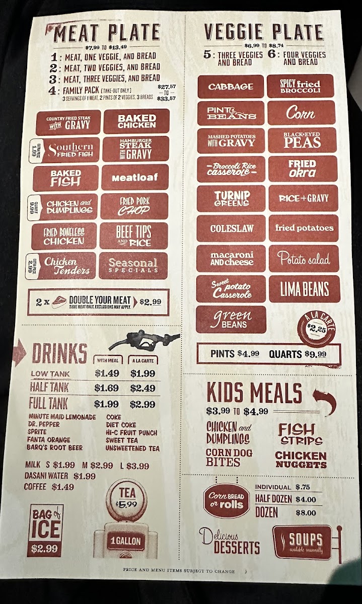 Cola with options: Low Tank, Half Tank, Full Tank, Gallon.