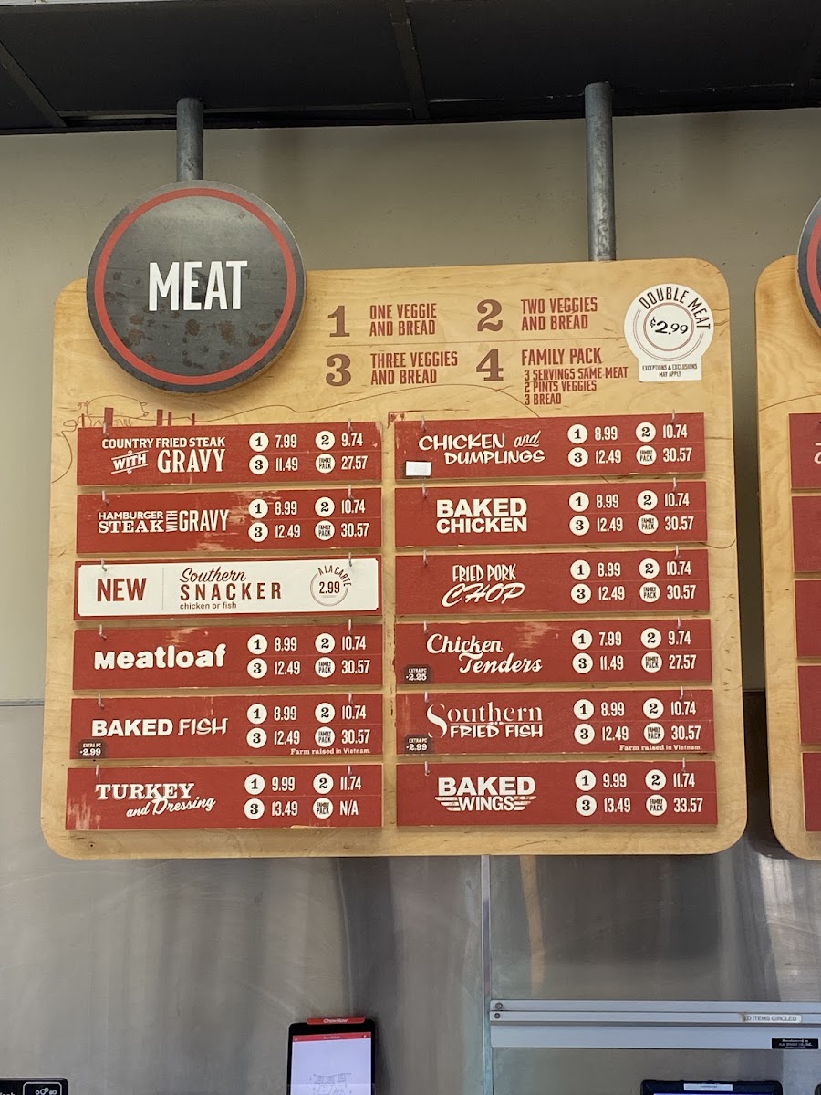 Meatloaf - comes with choice of one, two, or three veggies and bread