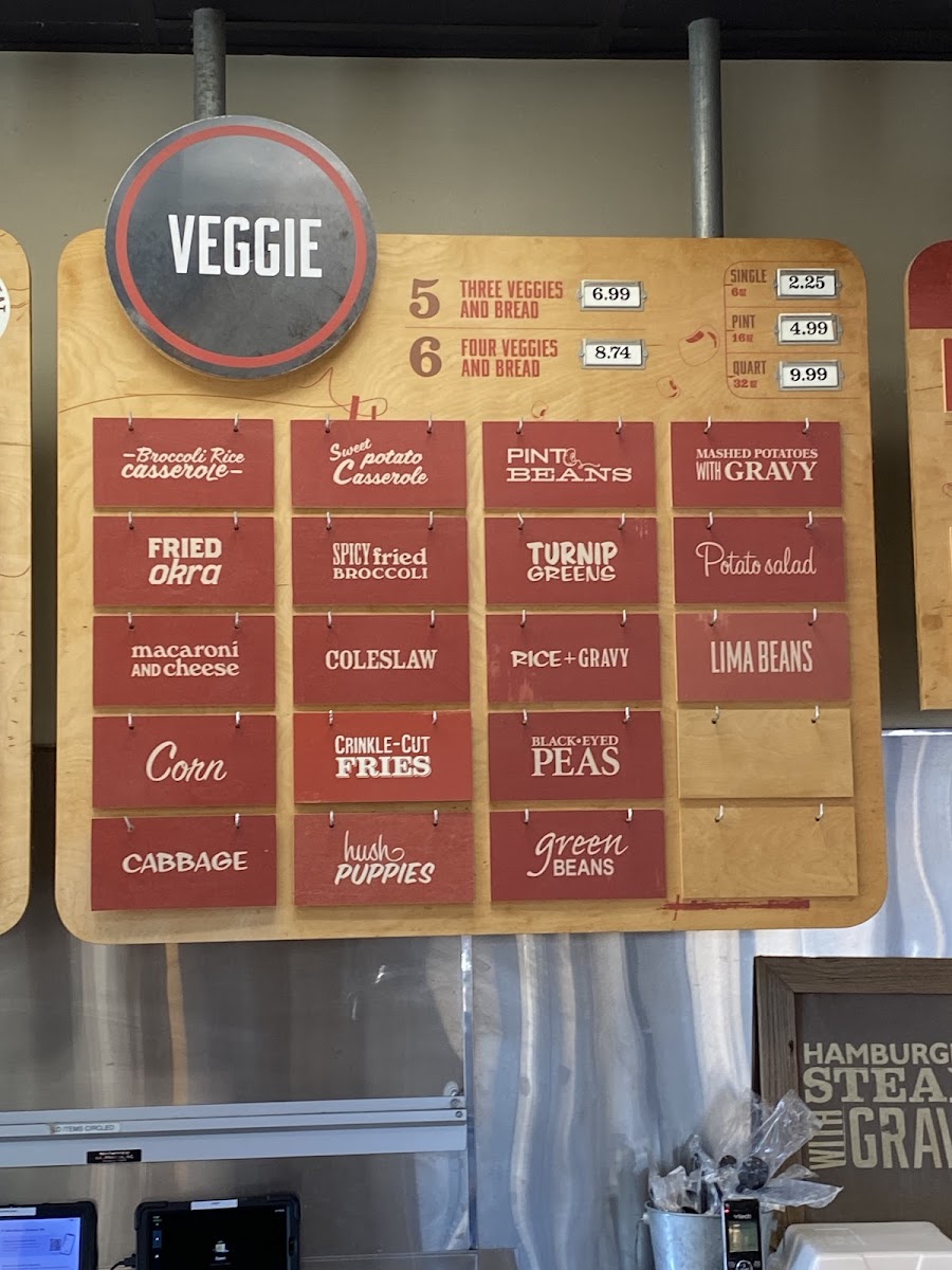 Country fried steak - comes with choice of one, two, or three veggies and bread