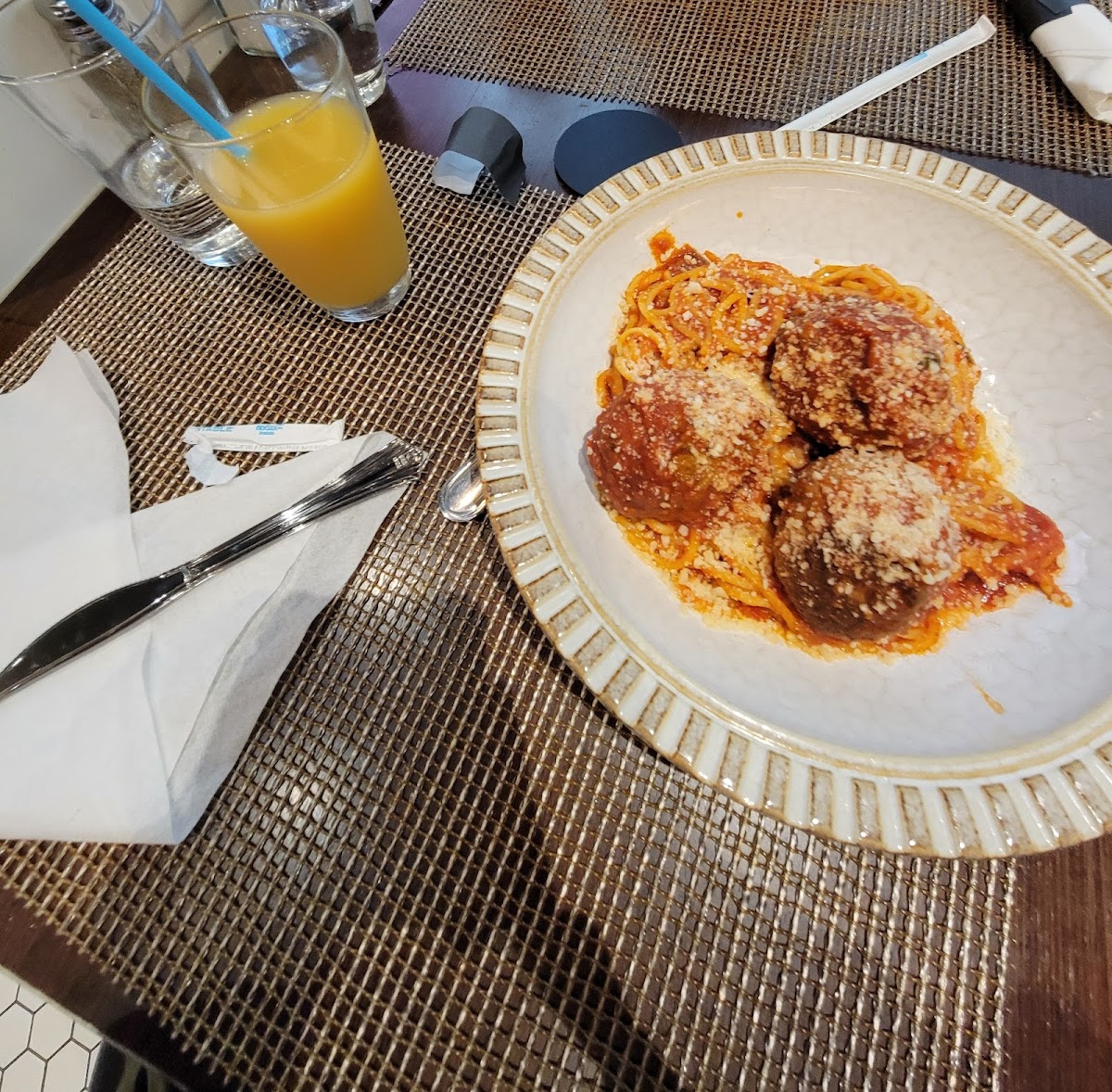We enjoyed the spaghetti meatball and carbonara! The serving is so huge!.The service is also excellent! Negative: paying the bill is very manual! I have to type my name, credit card number etc just to pay
