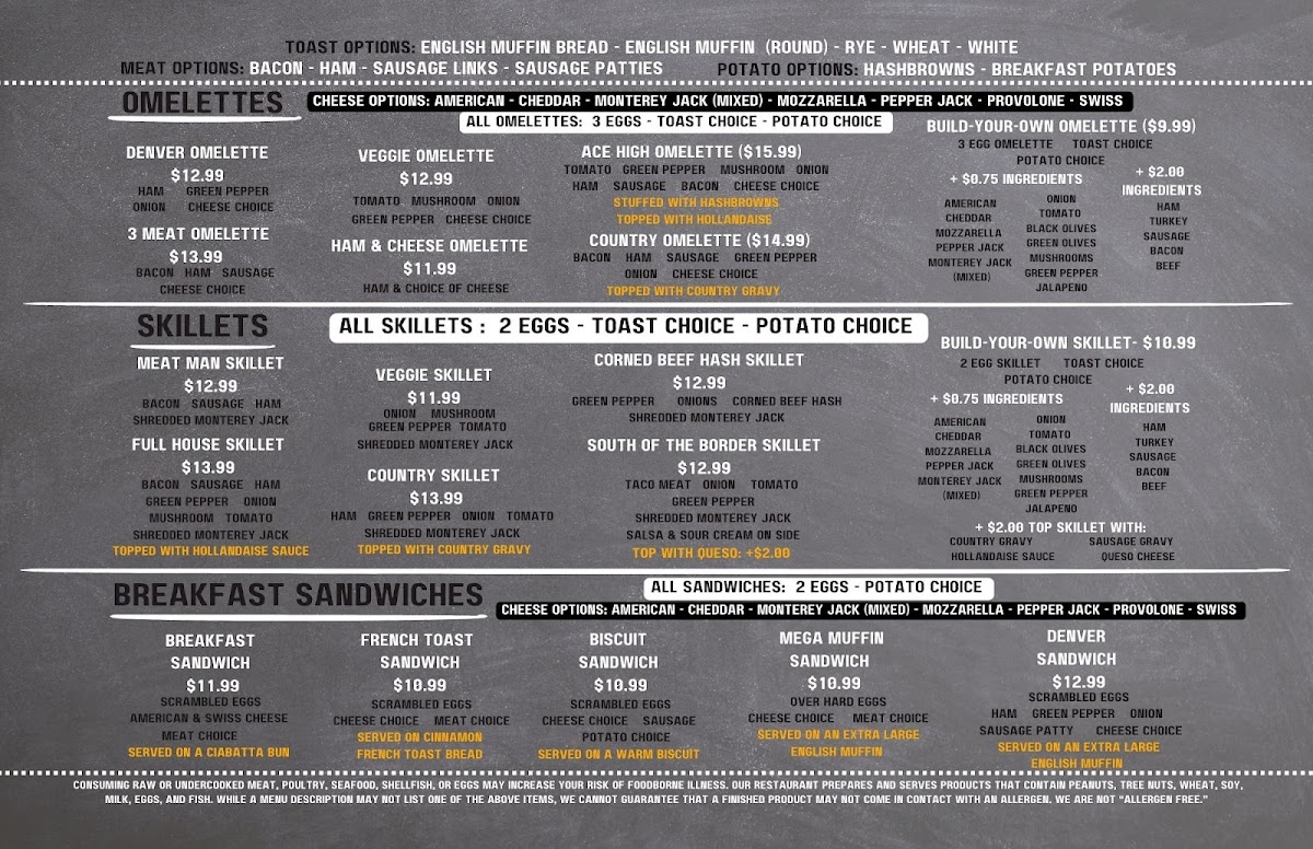 Ham, green pepper, onion, tomato, and shredded Monterey Jack topped with country gravy.