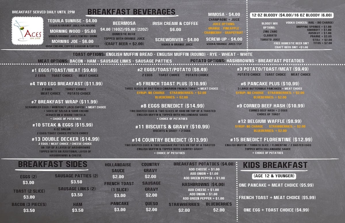 Scrambled eggs and Monterey Jack cheese + meat choice + sides of salsa & sour cream served on a warm tortilla + choice of potatoes.