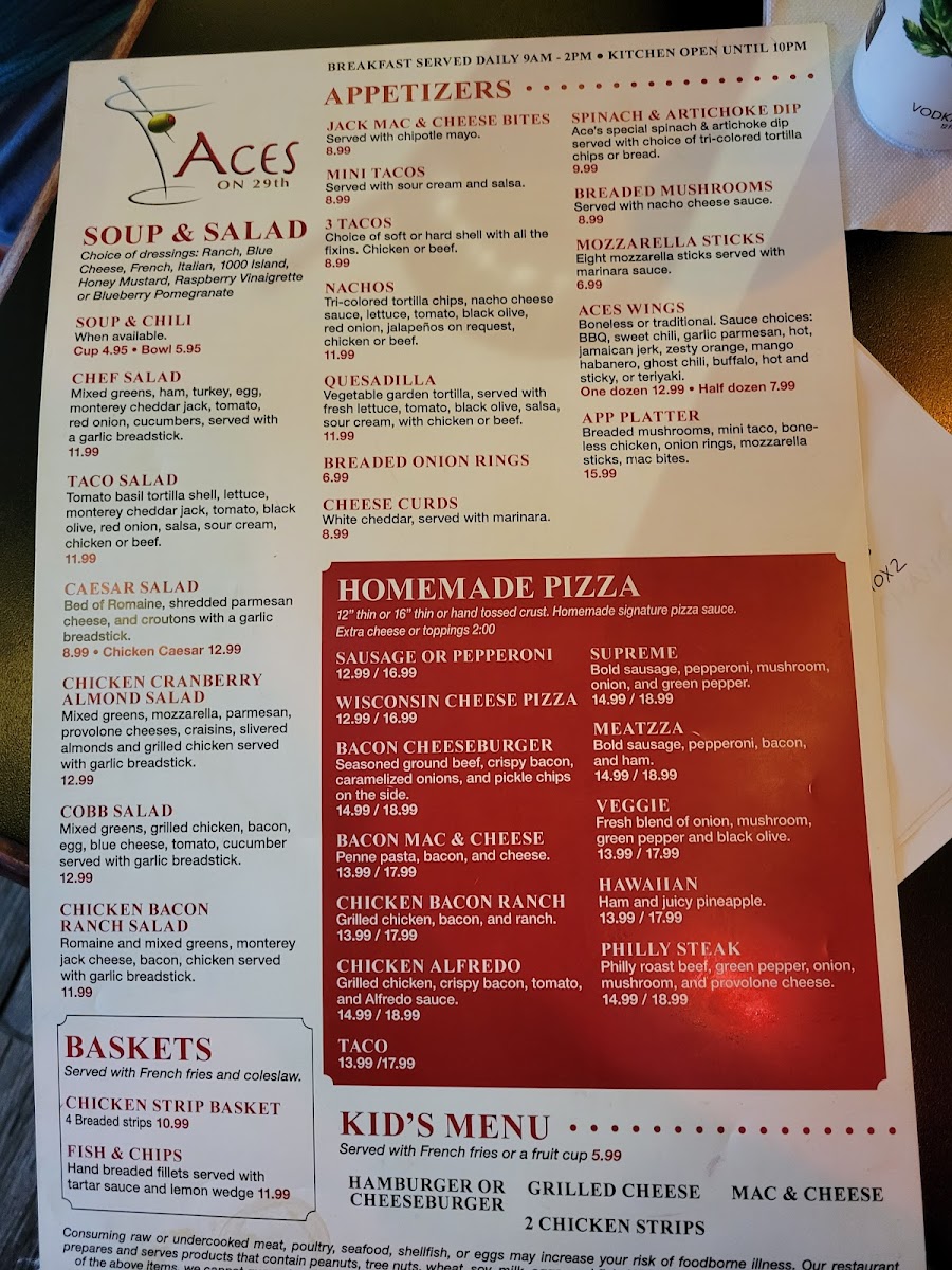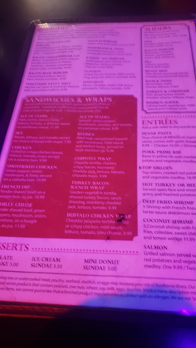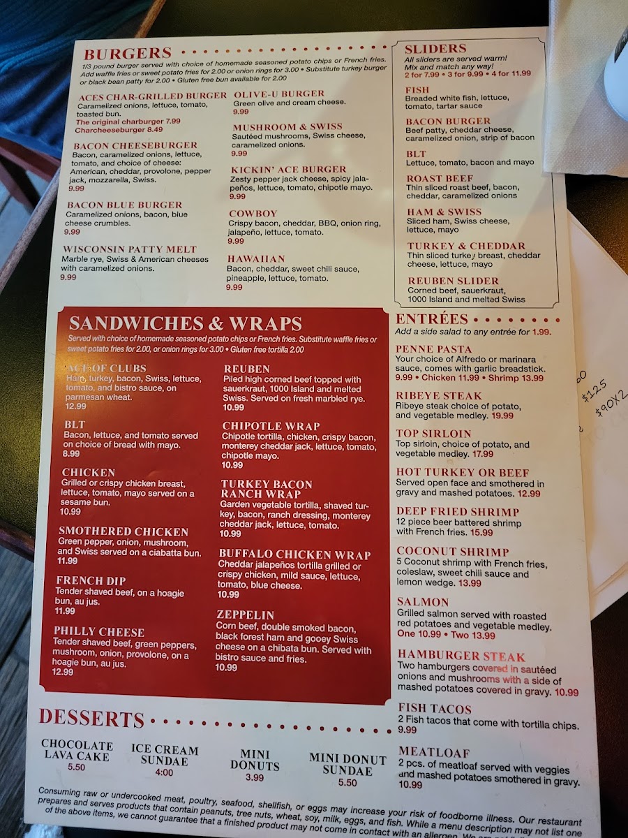 16 oz ribeye steak, baby reds, or mashed potatoes, and vegetable medley.