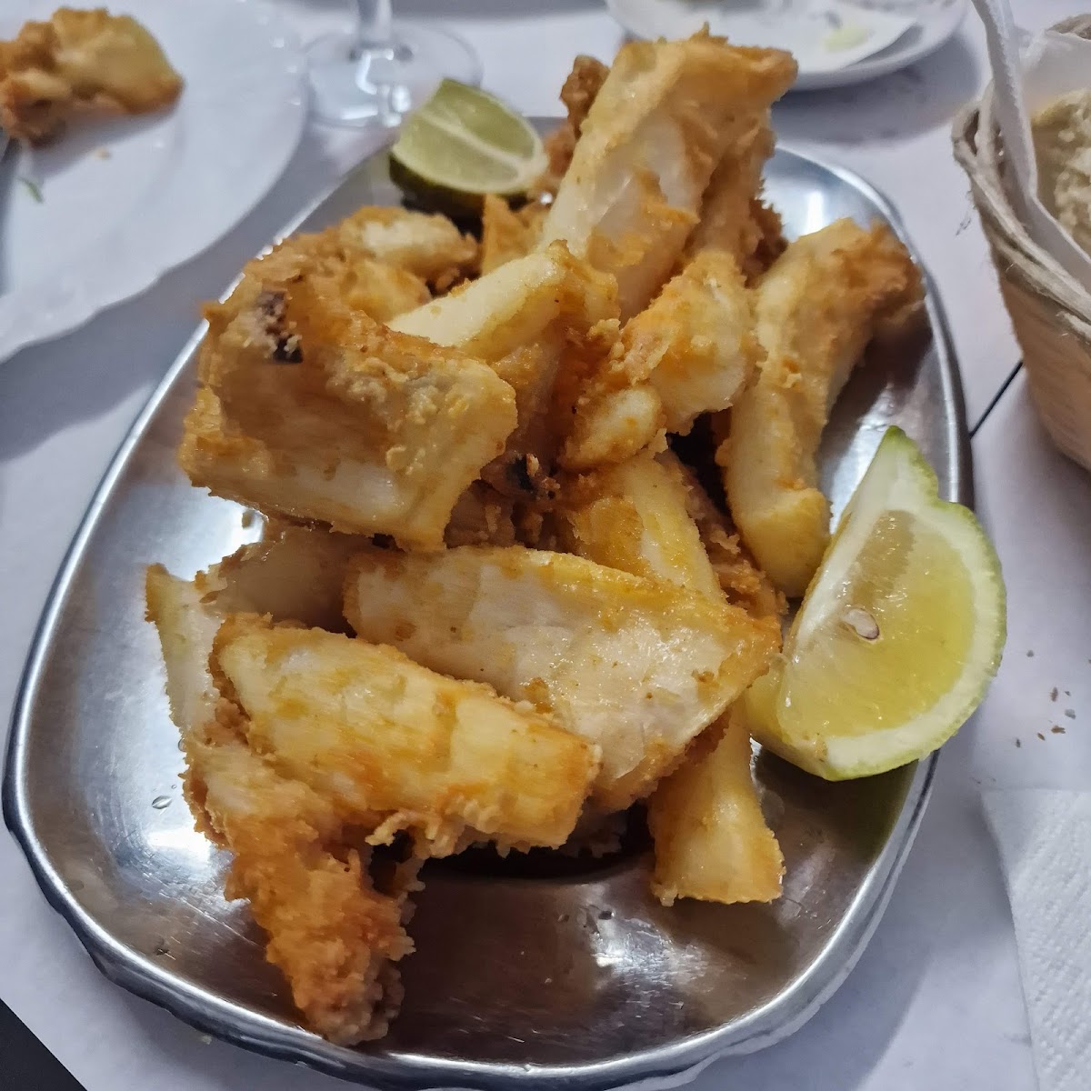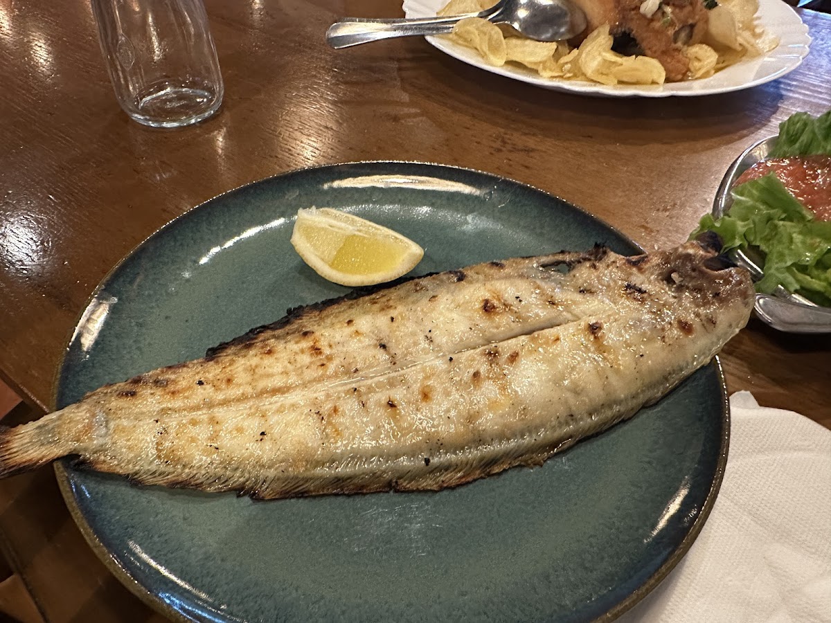 Some of the best fried cuttlefish I've had in Setúbal in a long time, and the grilled fish was excellent. Beautifully crisp and light batter, while the inside was tender and succulent, never chewy. The focus is, rightly, on the quality of the extremely fresh seafood, but the traditional sides of boiled potatoes and salad were capable accompaniments. Only quibbles would be that we weren't given a side of fries with our fried cuttlefish (though I'm sure they'd have brought them over if we had asked, we didn't because there was too much food already), and that there is still no tradition of serving it with a nice aioli or similar sauce. The lemon and black pepper work fine, but they don't elevate the dish in the same way.