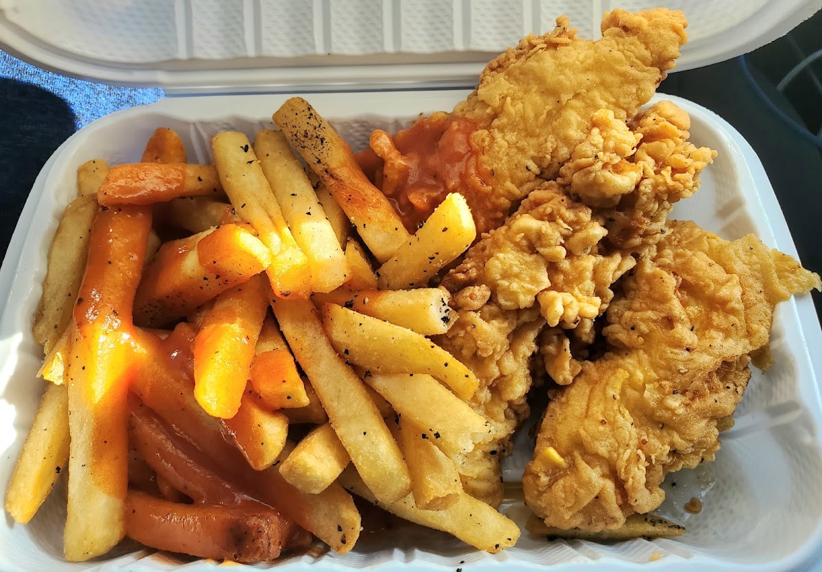 Go say wassup to the juice man mr oj ,chicken tenders were fire cut chicken breast not that frozen Tyson chicken nugget crap ,he was out of western fries hopefully he has them next time I go I gotta see wassup with them