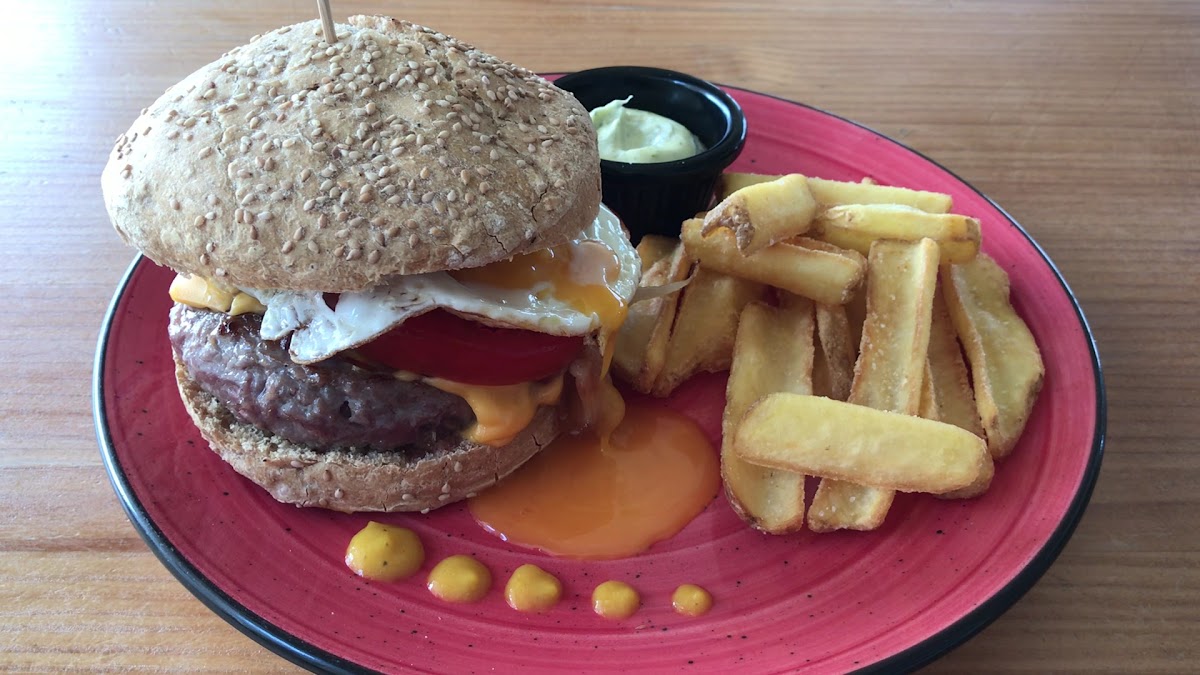 Great place to have a drink or dinner with the seaview. There was a surfing competition going on the day we visited, so it was full and the staff were a bit overwhelmed. We had some cañas and ordered a dish with Yuca and Boniato, which was delicious and the Langostinos, which were finger licking good! Reserve ahead if you can, we were lucky to get a table which was reserved for later that night.