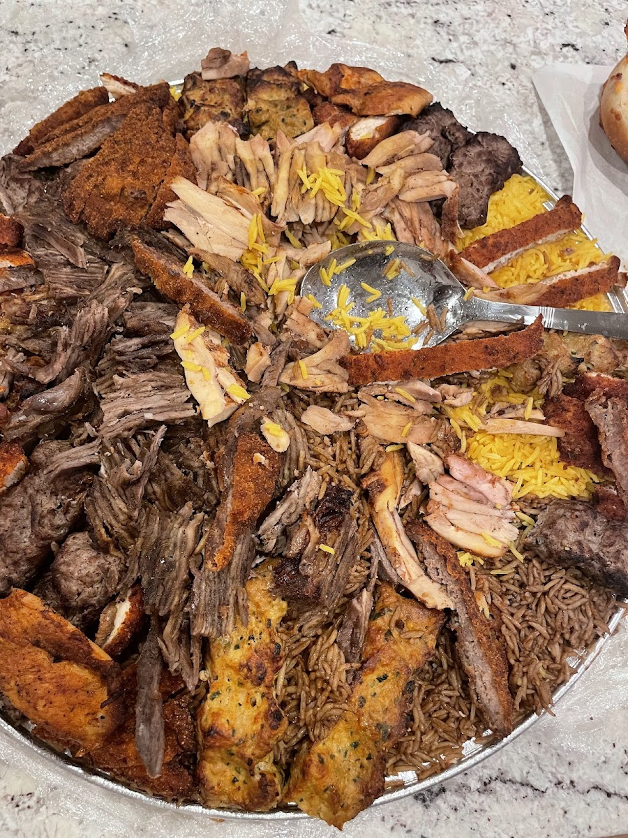 Ordered the combo for 5 and it easily fed 10 adults. What was more impressive was that the food was delicious - chicken cream chop and kabobs were perfectly cooked (not dry), and the chicken thighs were a great addition to the platter. I would ordered from Al Nejoum over Dream Market any day!