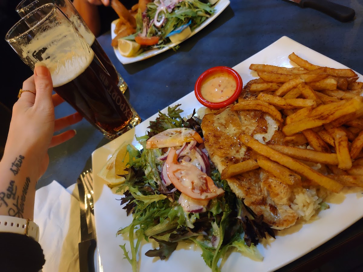 food is good, reasonable prices and barmaid let me use her usb-c charging cable