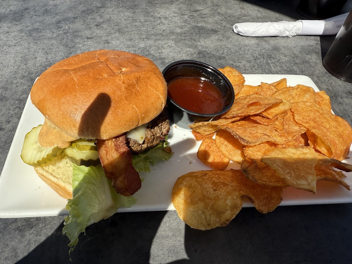 Great burger and chips! Bbq that came with chips was amazing. My son got the fish and chips and loved it. We sat on outdoor patio, very relaxing. Our server, Madison, was fantastic!! Highly recommend