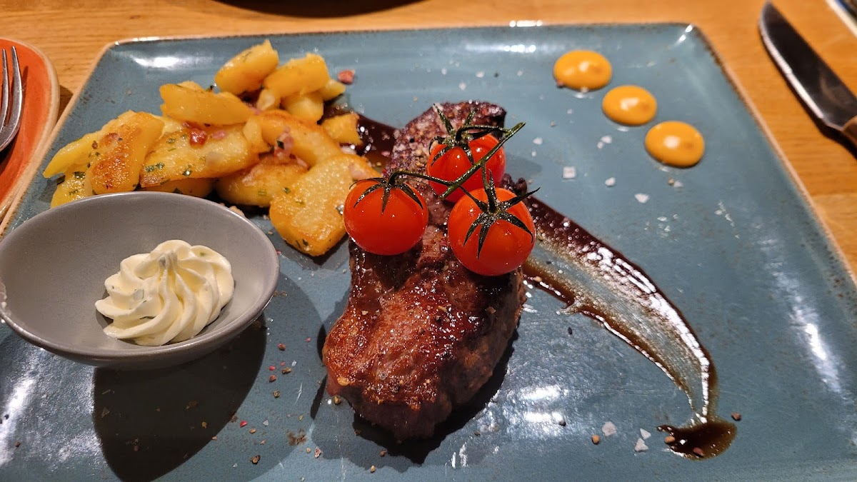 Ein rundum gelungener Abend. Nett empfangen und die Getränke kamen in Rekordzeit. Meine Bitte ob ich die Käsesauce (Bergkäse) eventuell vorab probieren dürfte bevor ich die super leckeren Spinatknödel bestelle wurde umgehend und mit einer Selbstverständlichkeit nachgekommen die ich selten erlebt habe. Die Vorspeise kam nach wenigen Minuten und auch die diversen Hauptgerichte wurden schnell gebracht. Das Servicepersonal ist sehr aufmerksam und freundlich. Wir hatten ein Geburtstagskind dabei und sie brachten unaufgefordert ein Dessert mit Fontäne sowie Dessertbesteck für alle. Alle Gerichte waren ausgezeichnet und im modernen Design angerichtet, genau wie das Ambiente. Auf dem Weg zu den Toiletten bekommt man Einblicke in die Küche und die Arbeitsweise was ich persönlich super finde. Wir kommen definitiv wieder, es hat alles gestimmt.