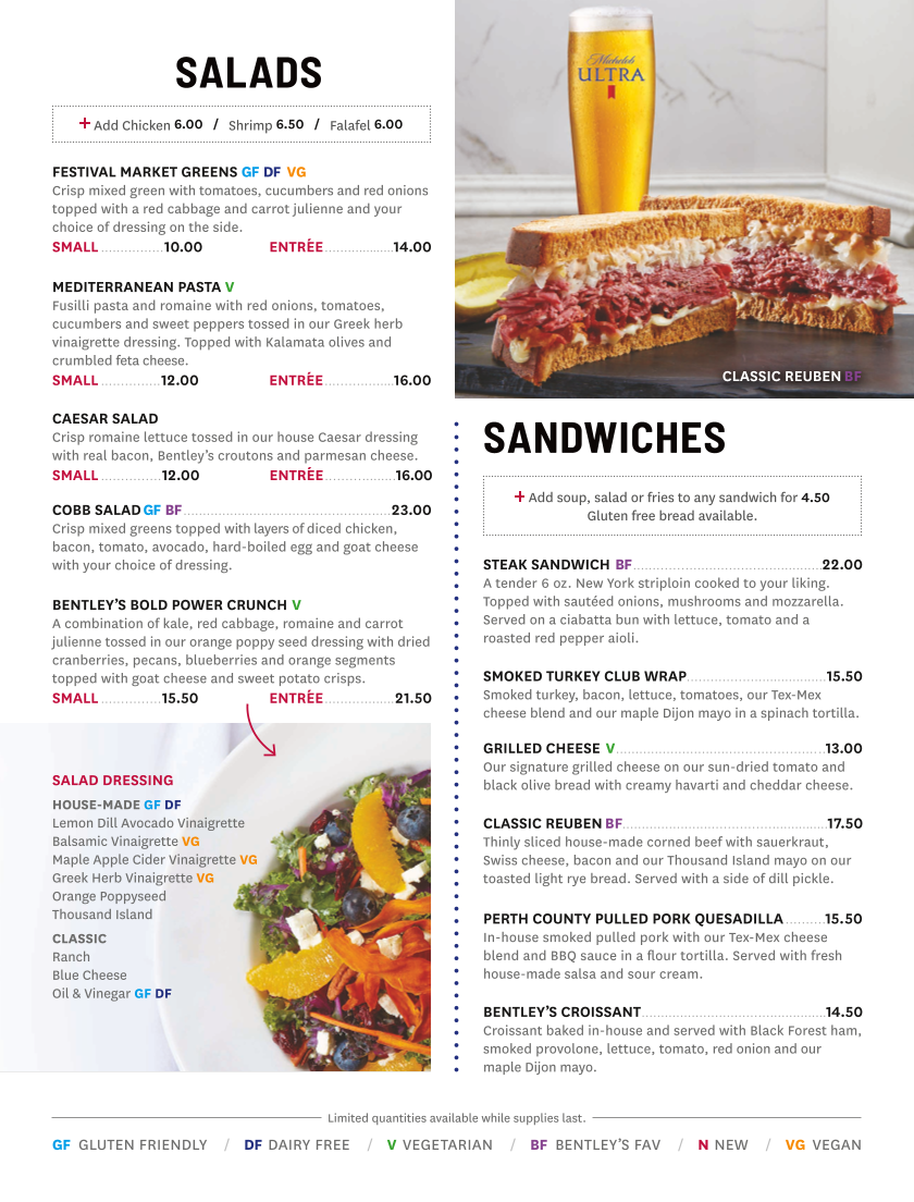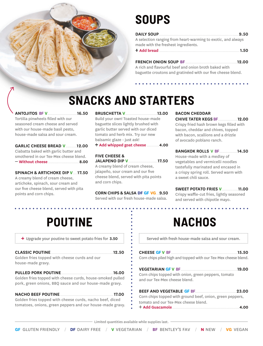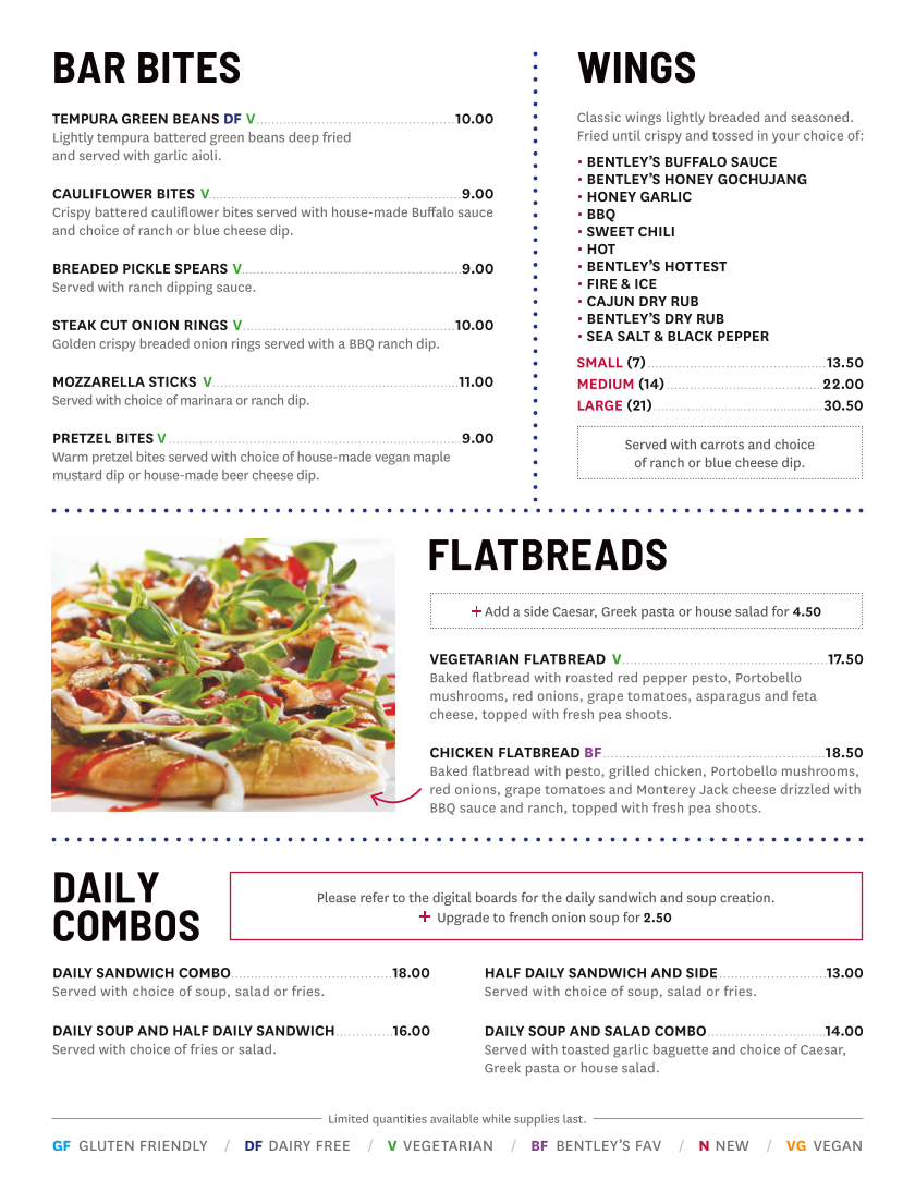 Bentley's Bar Inn & Restaurant Menu