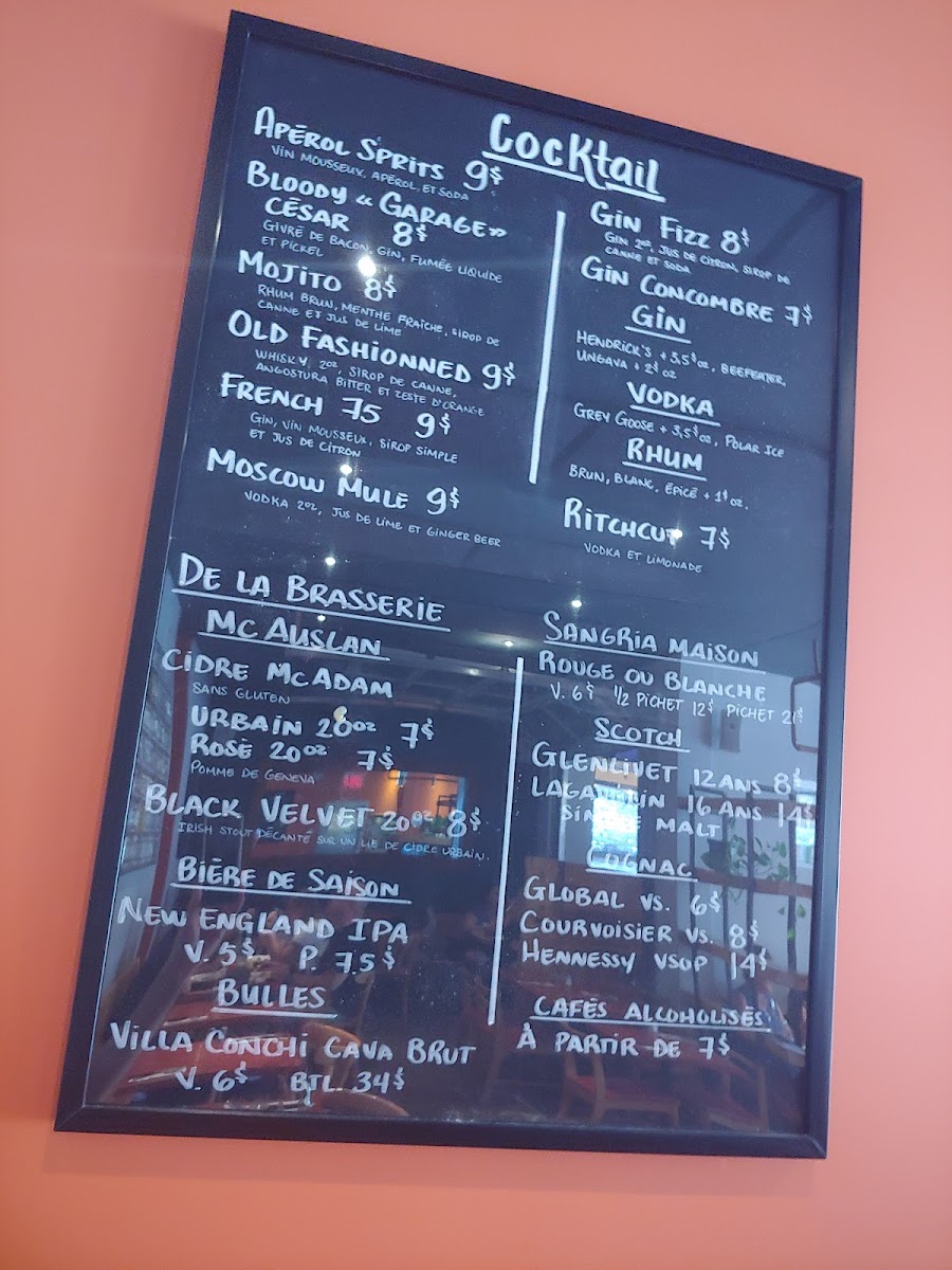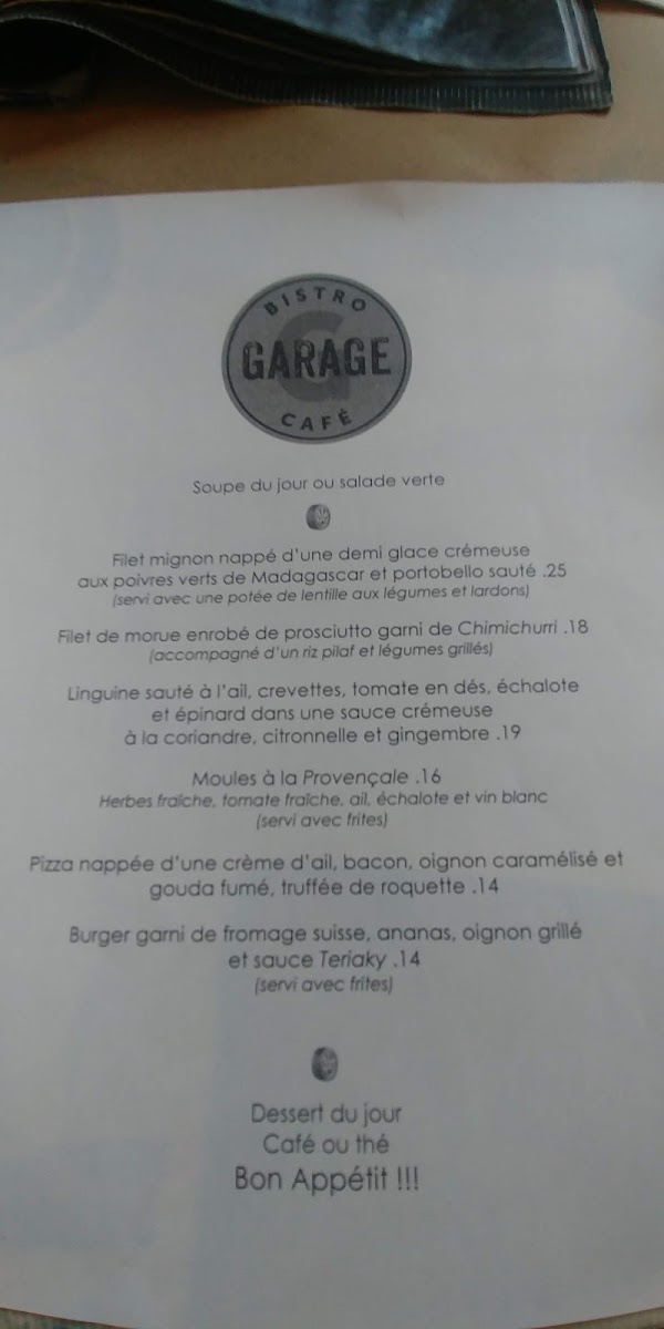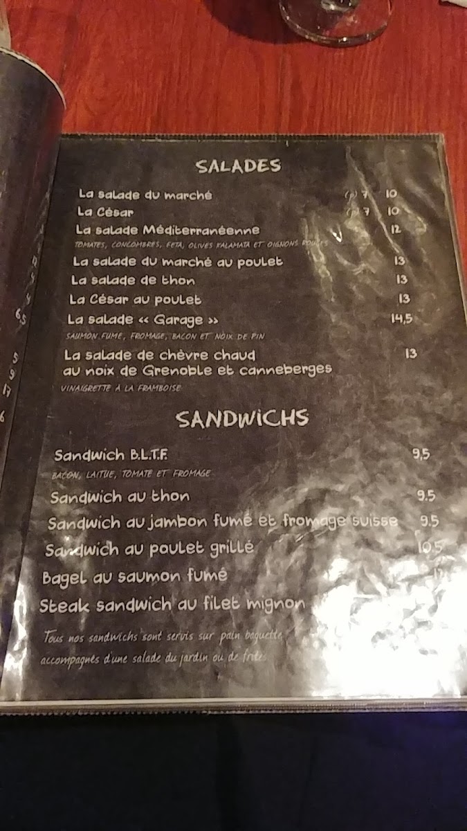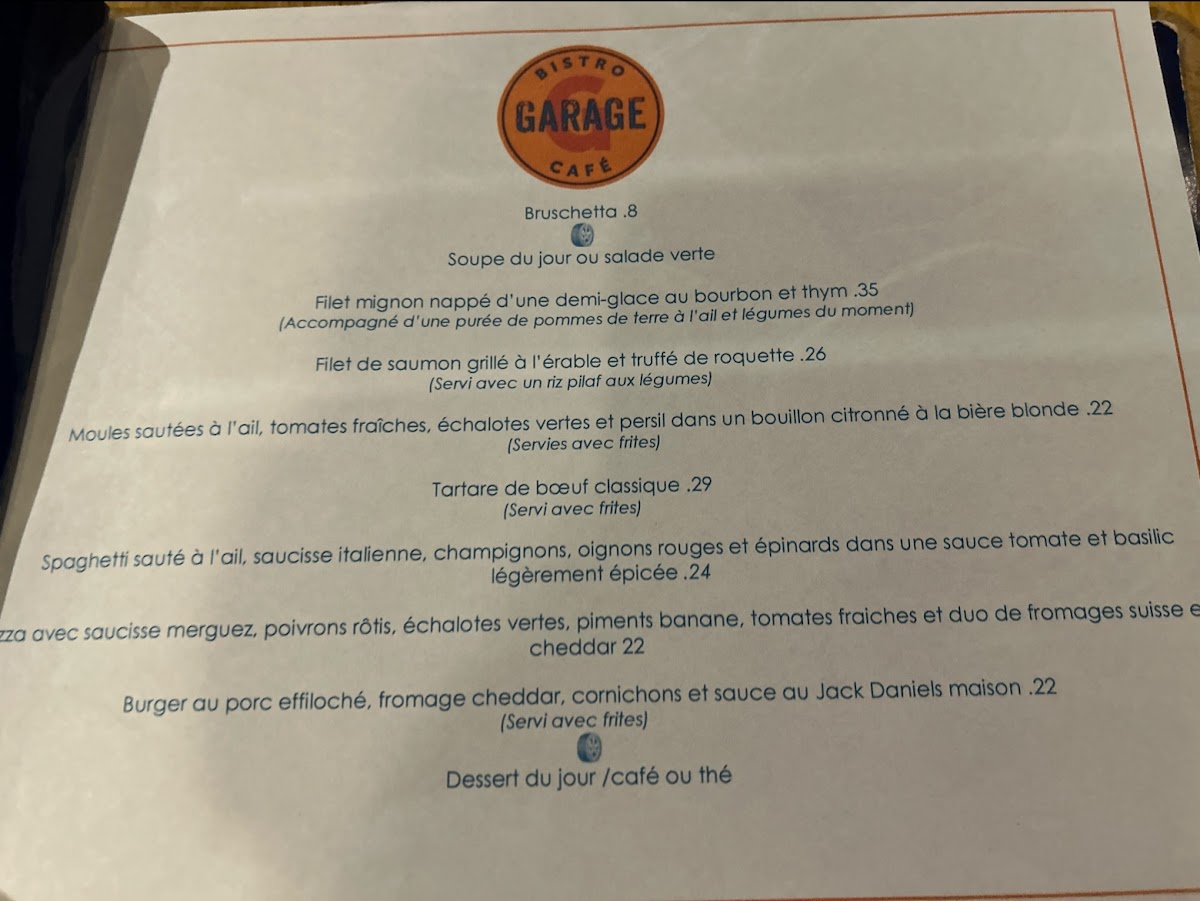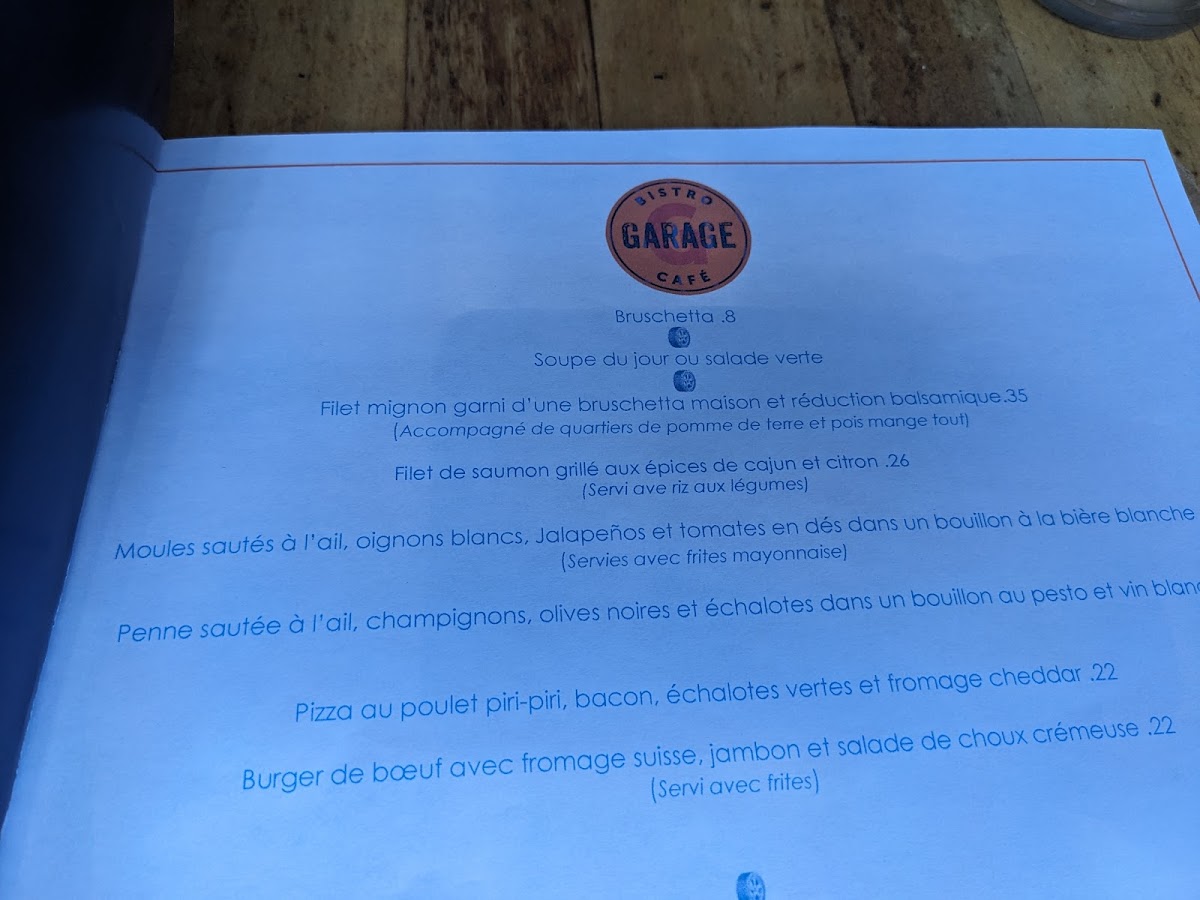 Bistro Garage Café Menu